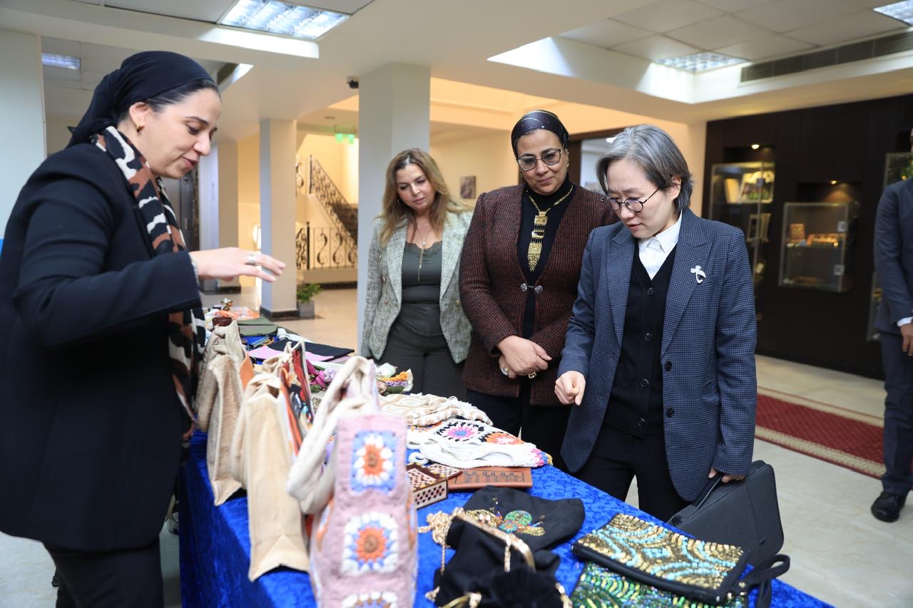 وعلى هامش الزيارة، تفقدت الدكتورة سويونج بارك والوفد المرافق لها معرض المنتجات الحرفية التي تم إنتاجها بأيدي سيدات مصريات، وأعربوا عن إعجابهم بجودة المنتجات ودورها في دعم التمكين الاقتصادي للمرأة.