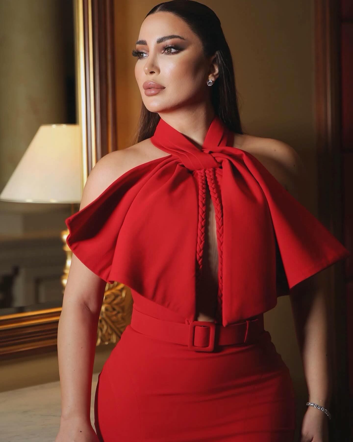 حضرت النجمة نسرين طافش حفل Joy Awards الأخير بإطلالة جذابة على السجادة الحمراء، حيث اختارت فستاناً أحمر طويل بتصميم ملفت مع فتحة عند الصدر وحزام يبرز الخصر، ليمنحها مظهراً أنيقاً وجريئاً في الوقت ذاته.