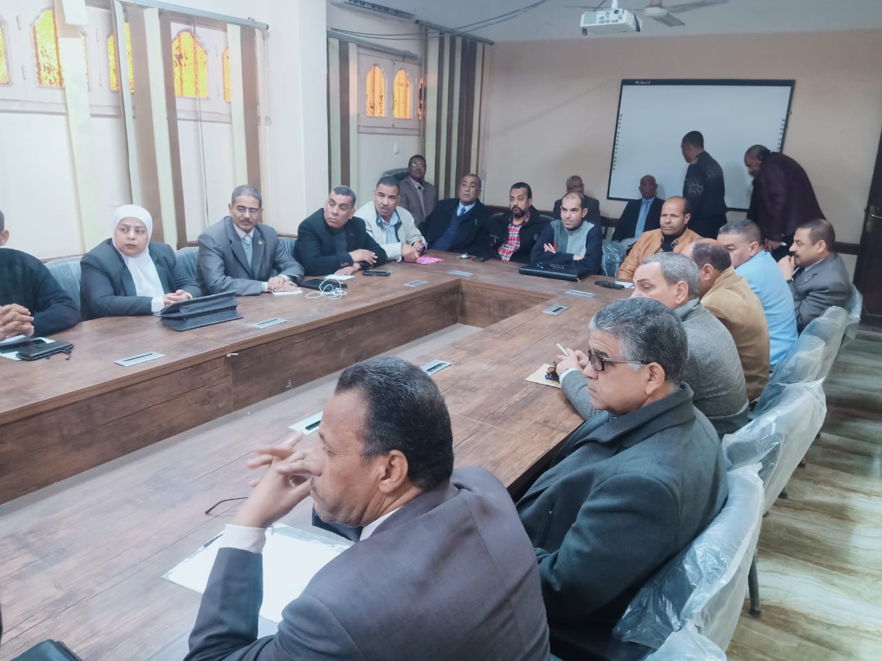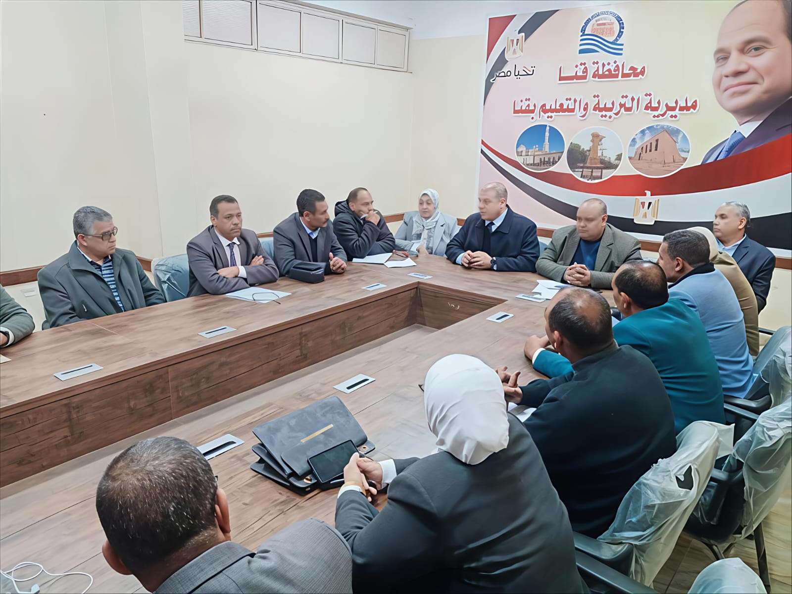 حضر الاجتماع كل من : مصطفى قاسم مدير عام الشئون المالية والإدارية، والدكتور وائل النجمى، مدير عام التعليم، وسوميه عبد الفتاح، مدير عام الشئون التنفيذية، ولفيف من القيادات التعليمية بالمحافظة.