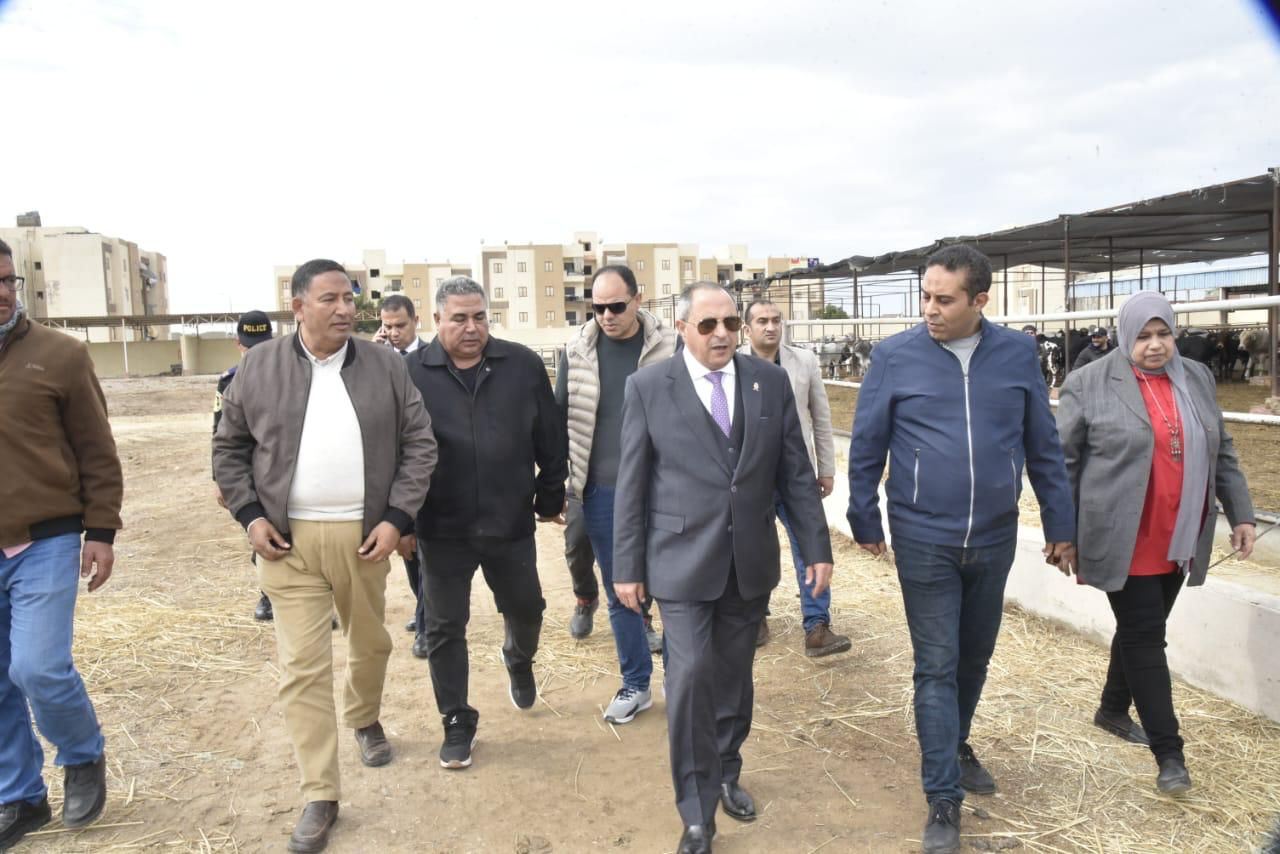 بعد استقبالها 300 رأس ماشية كمرحلة أولى محافظ بورسعيد يتفقد محطة تسمين الماشية