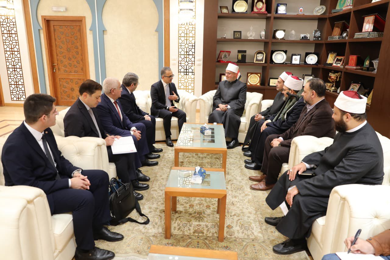 استقبل فضيلة أ.د. نظير محمد عياد -مفتي الجمهورية، رئيس الأمانة العامة لدُور وهيئات الإفتاء في العالم- رامين مامادوف، رئيس اللجنة الحكومية للعمل مع المنظمات الدينية في جمهورية أذربيجان، والوفد المرافق له، لبحث آفاق التعاون المشترك والاستفادة من الخبرات العلمية والمؤسسية لدار الإفتاء في مجالات الإفتاء والتدريب وبناء خطاب ديني معتدل.