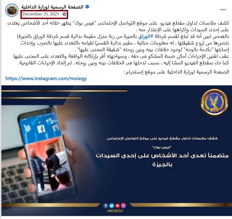 ومن جانبه أكد مصدر أمنى أن مقطع الفيديو المشار إليه قديم سبق تداوله خلال عام 2021 .. وتم ضبط المذكور فى حينه واتخاذ الإجراءات القانونية حياله ، وتم نشر بيان بالواقعة عبر الصفحة الرسمية للوزارة آنذاك .