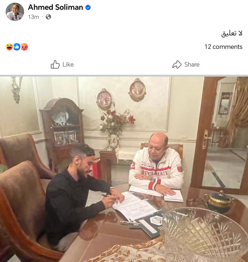 ونشر أحمد سليمان صورة تجمعه بـ ناصر ماهر أثناء إمضاء العقود القلعة البيضاء، معلقاً عبر صفحته على موقع التواصل الاجتماعي فيسبوك:"لا تعليق".