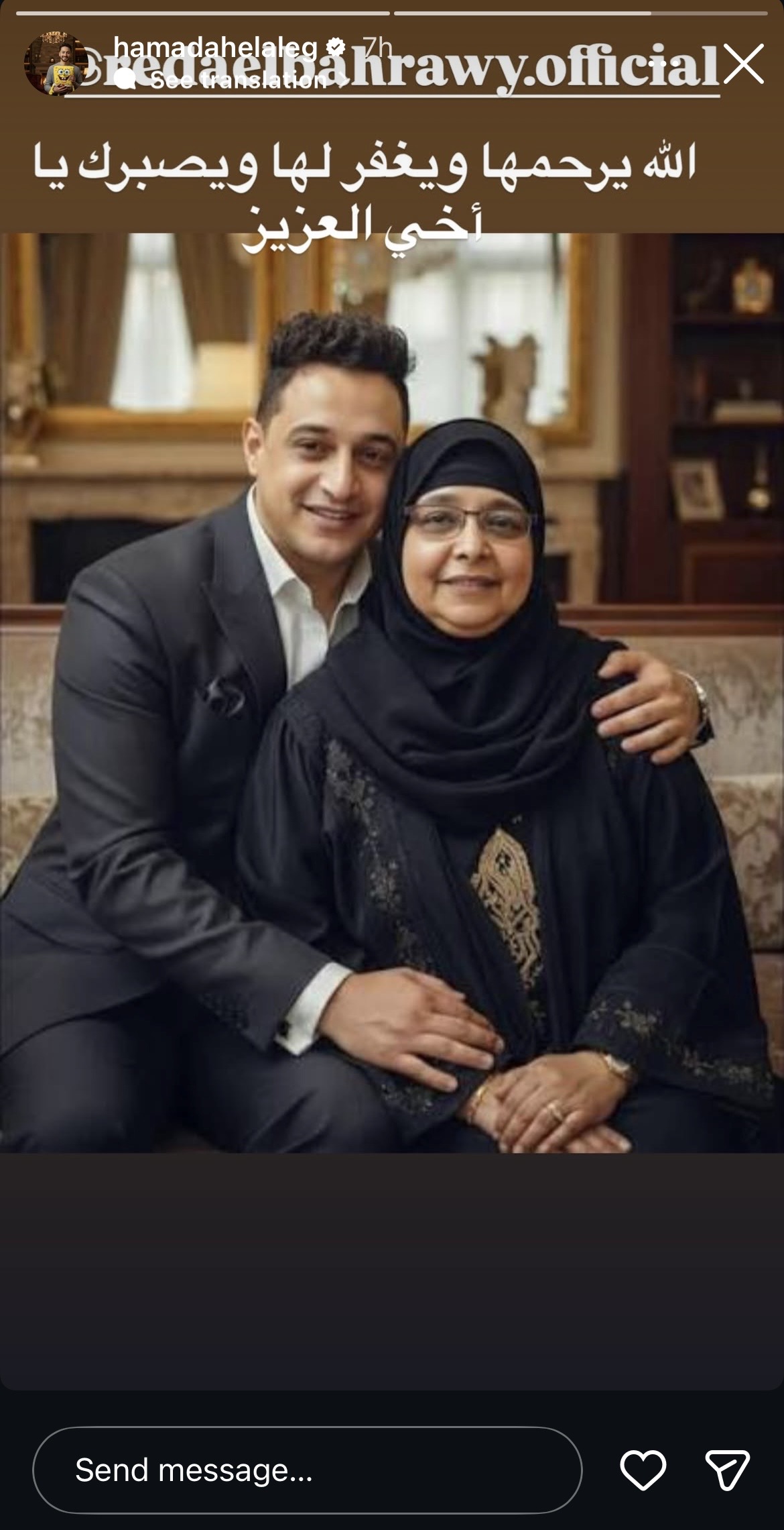 وكتب حمادة هلال عبر ستوري حسابه الشخصي على انستجرام: “الله يرحمها ويغفر لها ويصبرك يا أخي العزيز”.