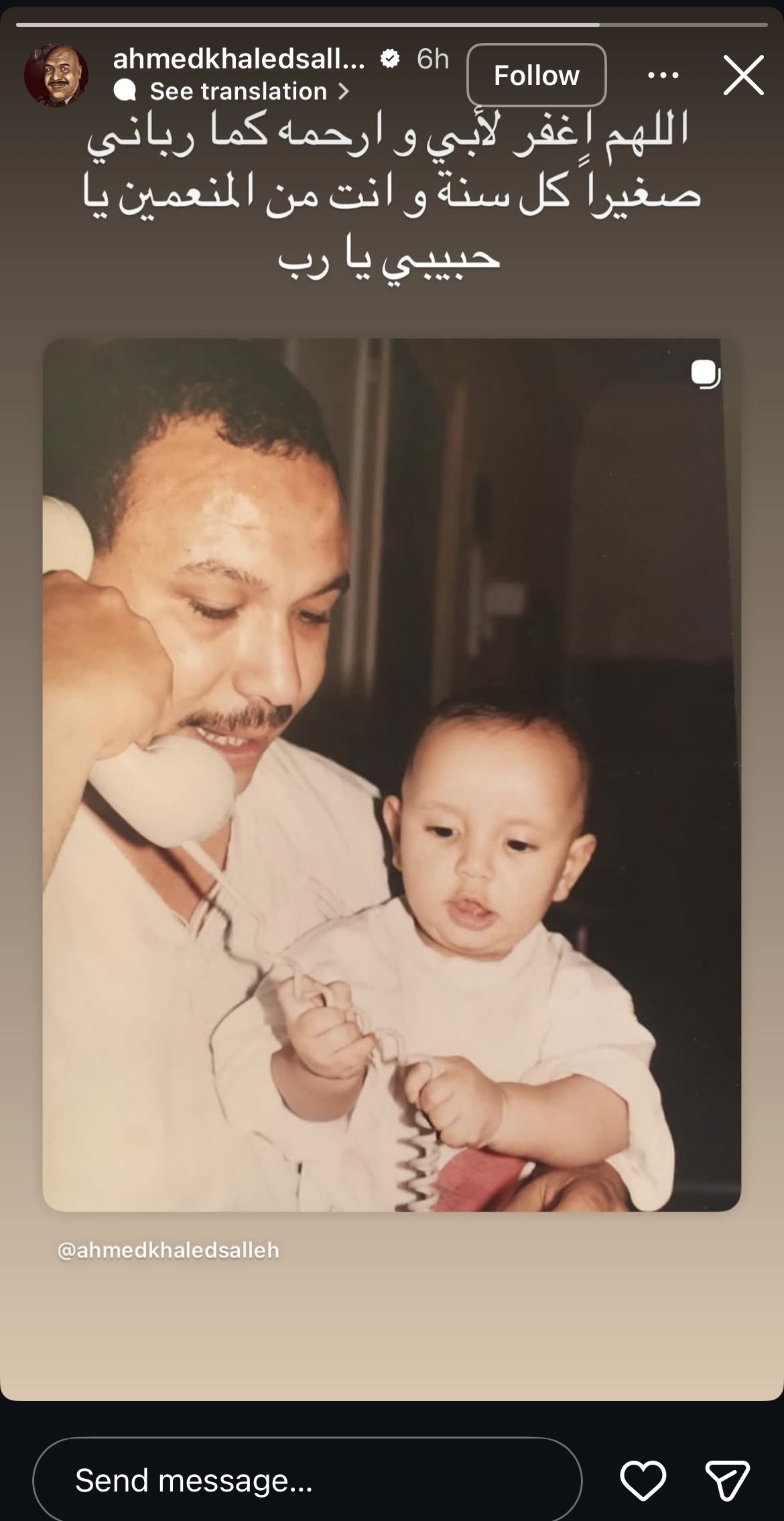 وكتب أحمد خالد صالح: “اللهم اغفر لأبي وارحمه كما رباني صغيرا كل سنة وانت من المُنعمين يا حبيبي يارب”.