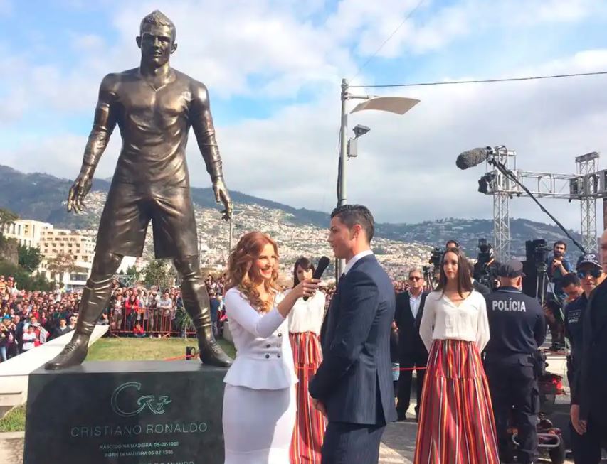 وكان كريستيانو رونالدو قد حضر بنفسه مراسم إزاحة الستار عن التمثال في عام 2014 والتقط حينها صورًا تذكارية برفقة عائلته وعلّق قائلًا: " إنه شعور مميز للغاية أن يكون لي تمثال في مسقط رأسي ".
