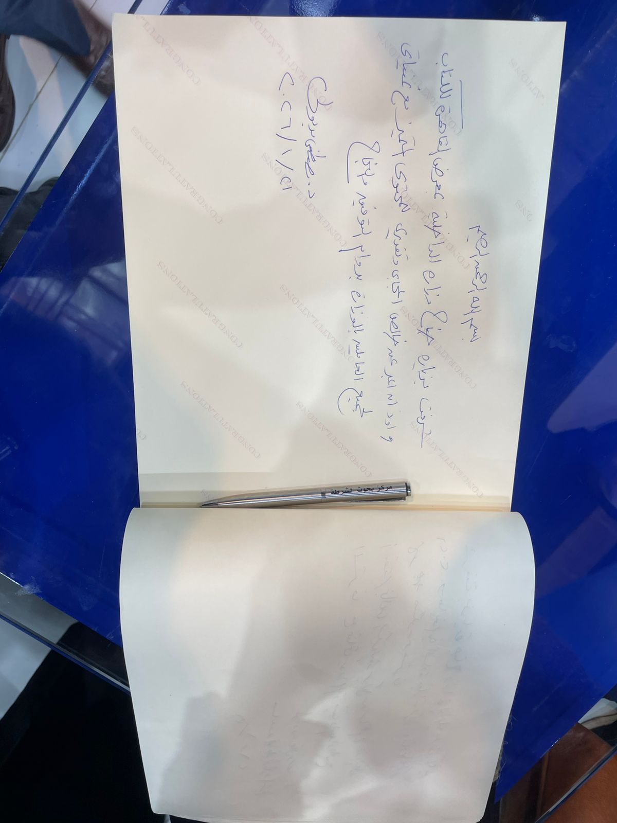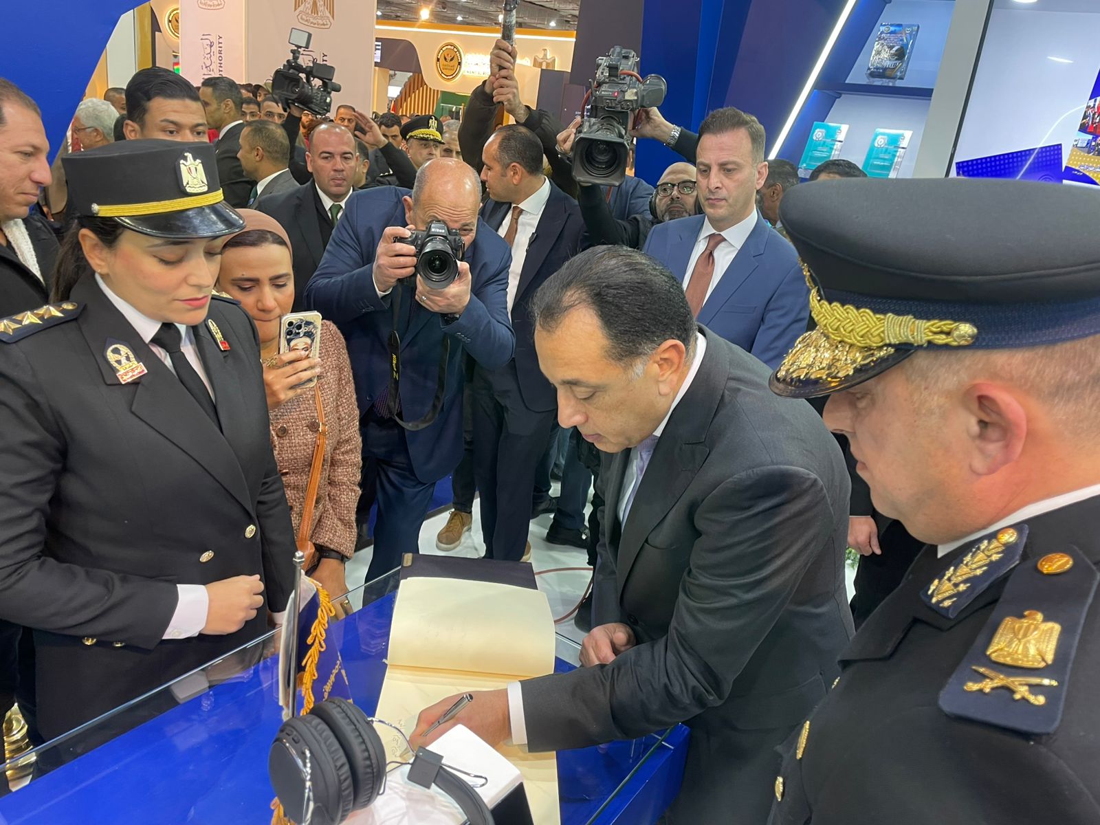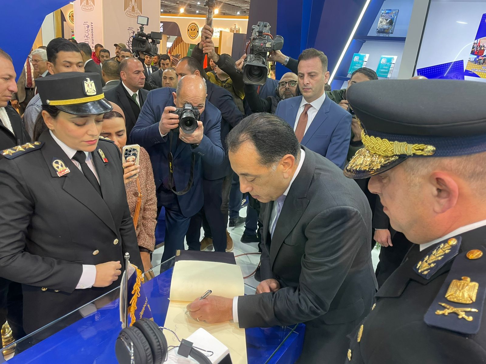 كتب الدكتور مصطفى مدبولي رئيس مجلس الوزراء كلمة تذكارية على هامش تفقده جناح وزارة الداخلية بمعرض القاهرة الدولي للكتاب في دورته الـ 57 والمقامة بمركز مصر للمؤتمرات والمعارض الدولية بالتجمع الخامس.