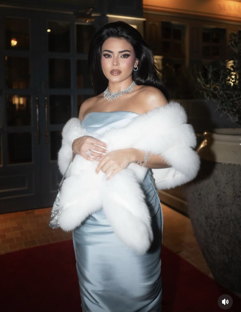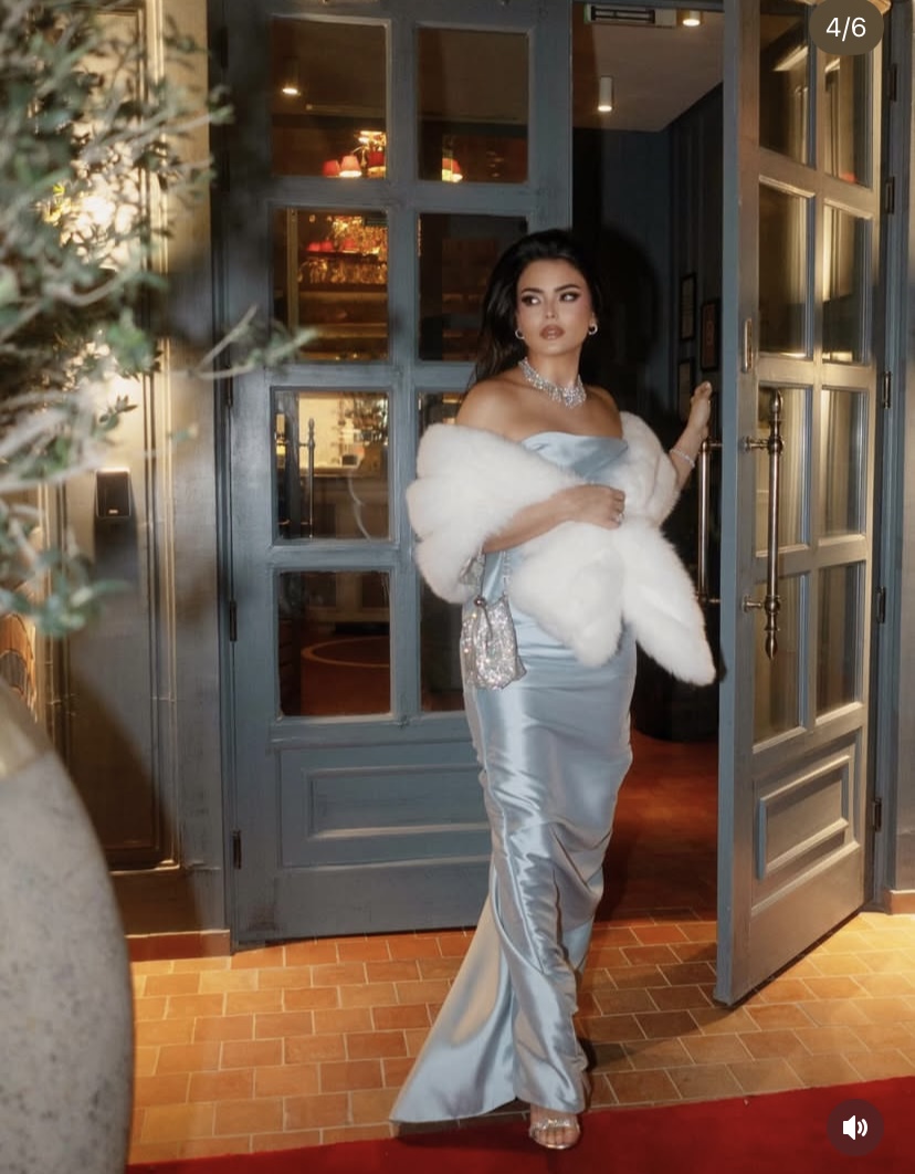 ونشرت أسماء الصور عبر حسابها الرسمي على موقع "إنستجرام"، وظهرت بإطلالة جريئة، حيث ارتدت فستانًا فضيًا بدون أكمام، ونسقت معه فورير فرو باللون الأبيض .