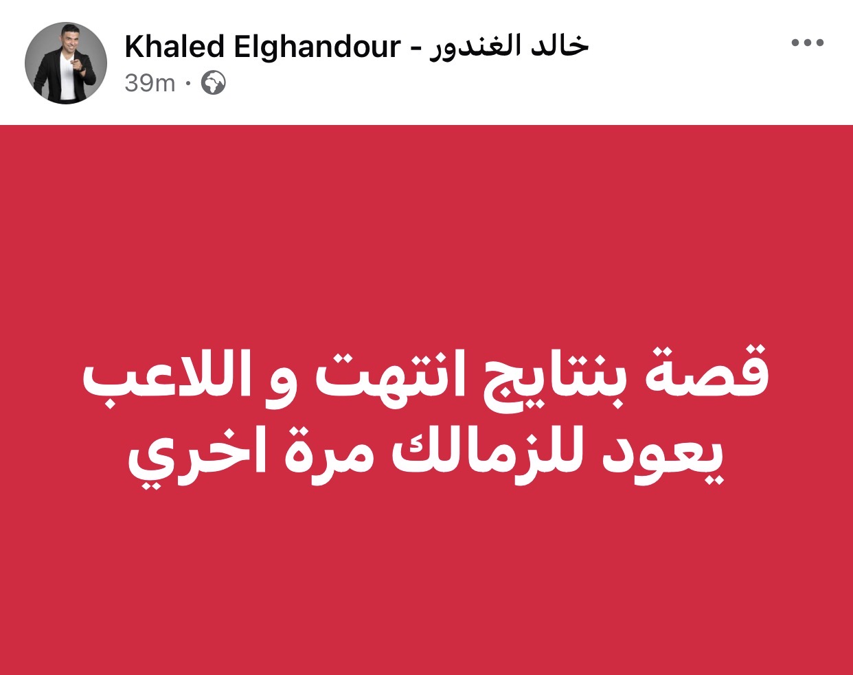 وكتب الغندور عبر حسابه الشخصي بموقع فيسبوك: "قصة بنتايج انتهت واللاعب يعود للزمالك مرة أخرى".