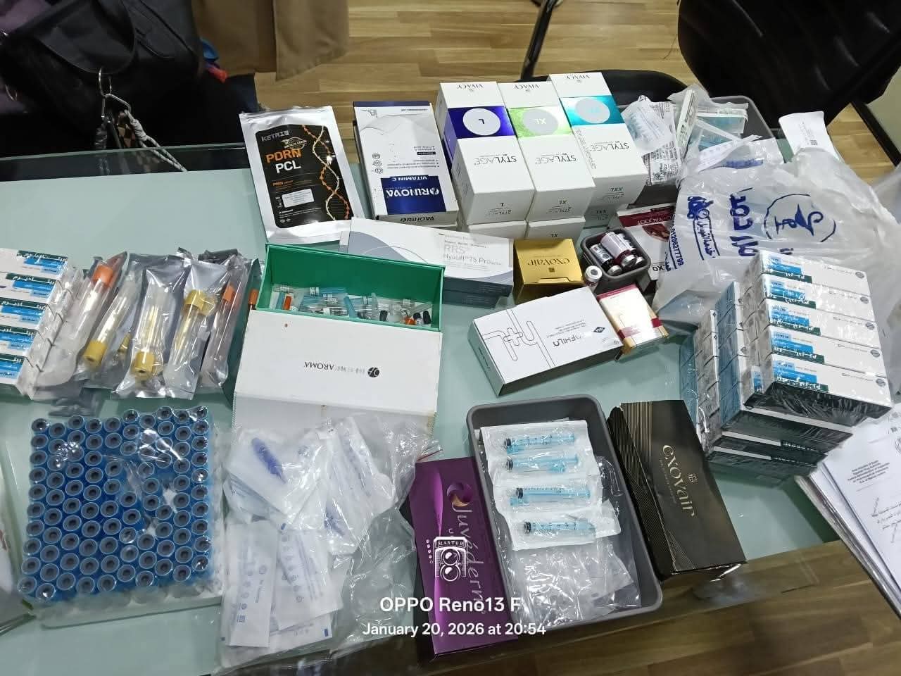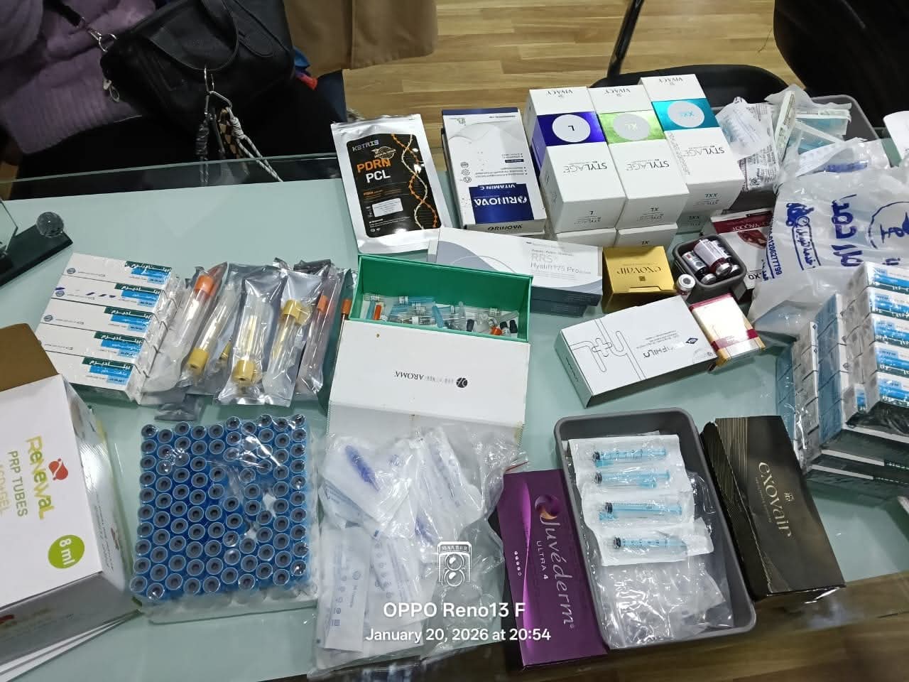 وأسفرت الحملة عن ضبط مخالفات جسيمة شملت ممارسة المهنة دون ترخيص، والتحفظ على كميات كبيرة من الأدوية والحقن مجهولة المصدر ومنتهية الصلاحية، إضافة إلى ضبط مركز تجميل غير مرخص، وتم اتخاذ الإجراءات القانونية اللازمة حيال الوقائع المضبوطة.