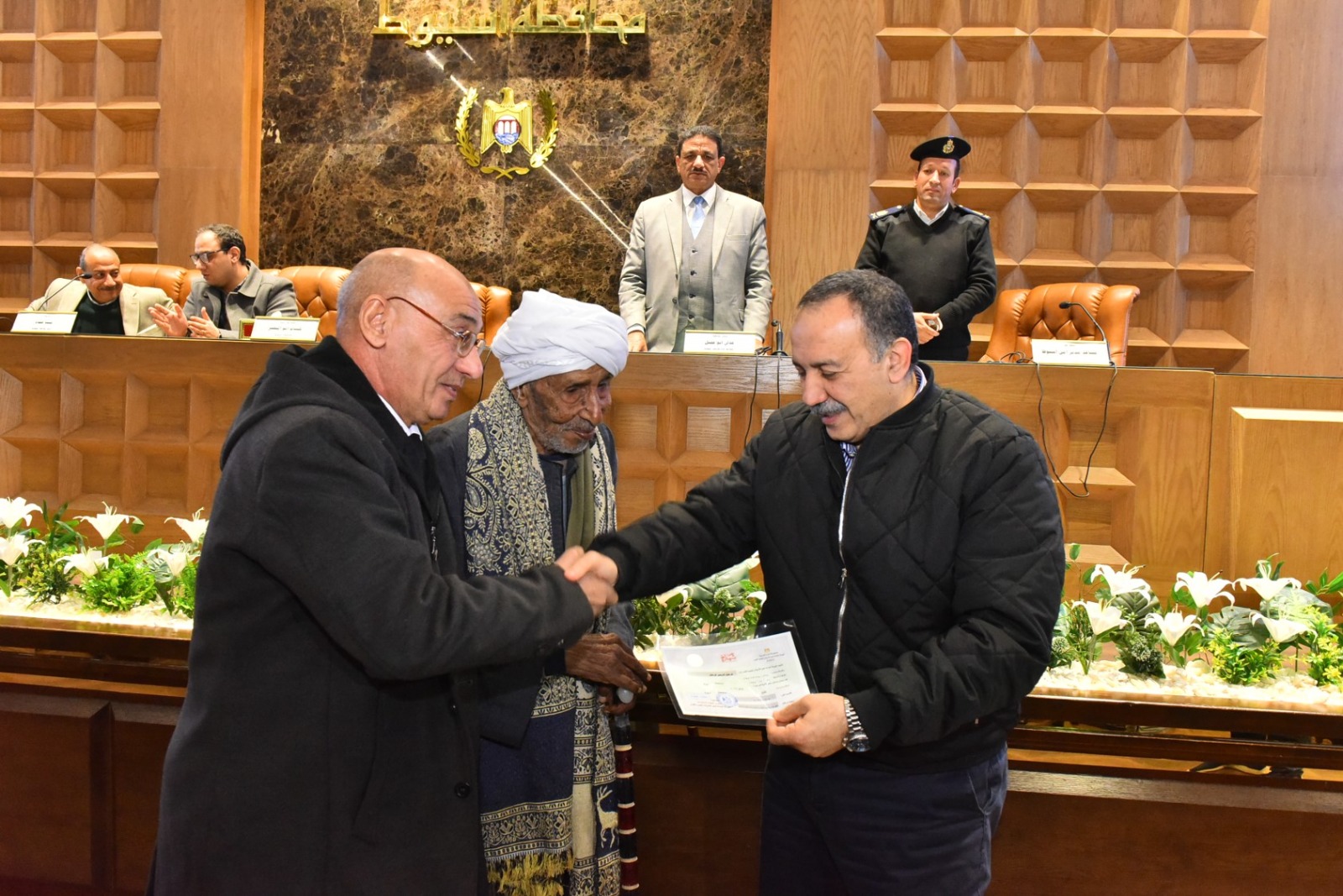 وقام محافظ أسيوط بتكريم المواطن فرحان إدريس فرحان، من مواليد عام 1935، ويبلغ من العمر 91 عامًا، والمقيم بقرية عرب مطير التابعة لمركز الفتح، حيث سلمه شهادة محو الأمية وشهادة تقدير، إشادة بما حققه من إنجاز شخصي ملهم.