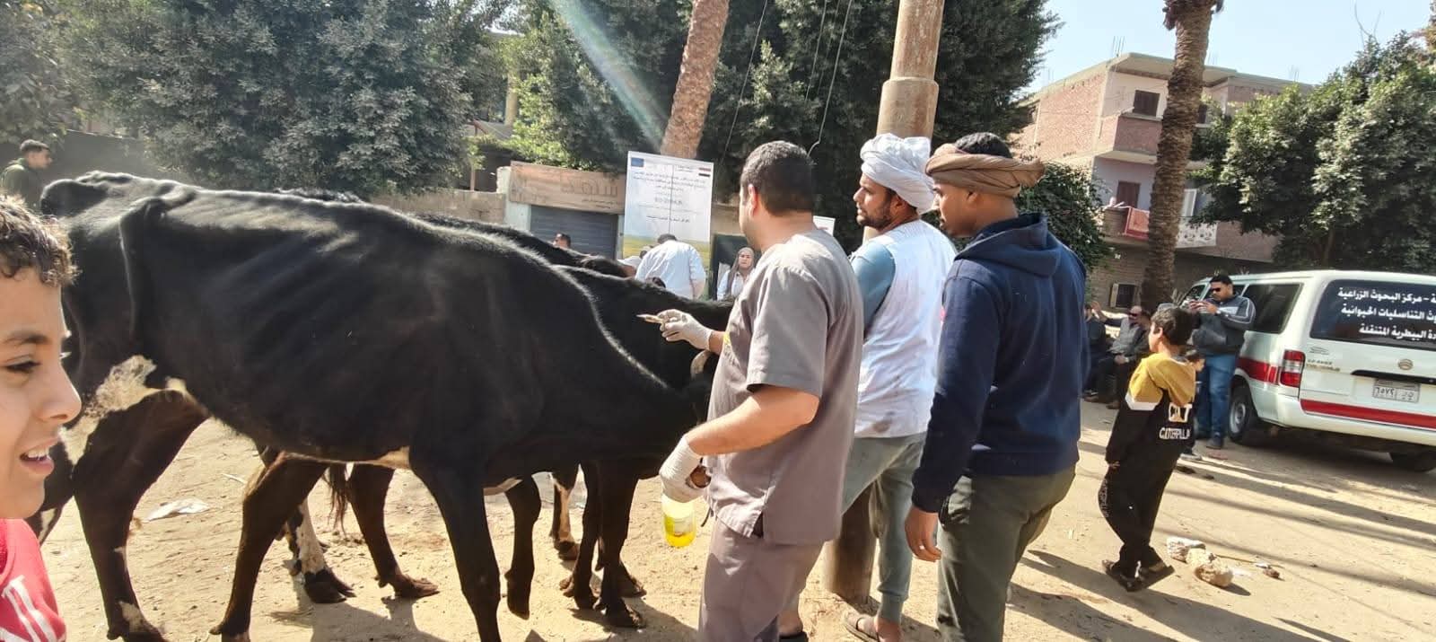 وتم خلال القافلة فحص وعلاج الحيوانات بالمجان، إلى جانب إجراء الفحوصات التناسلية وتحديد الحمل باستخدام جهاز الموجات فوق الصوتية (السونار)، وتشخيص وعلاج المشكلات التناسلية، فضلًا عن تنفيذ بعض العمليات الجراحية البسيطة، وتجريع الحيوانات ضد الطفيليات الداخلية، ورشها لمكافحة الطفيليات الخارجية.