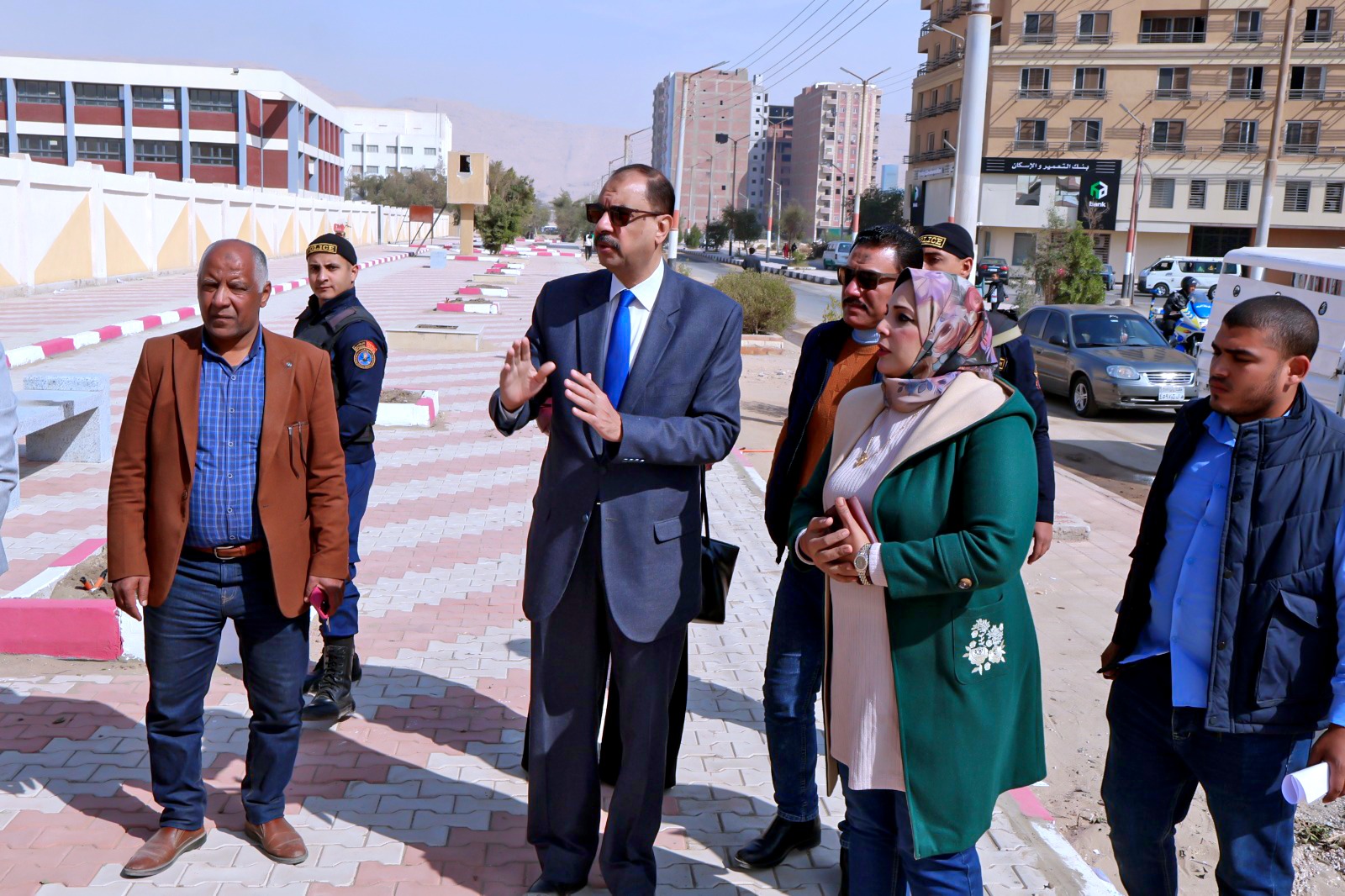 وعلى صعيد متصل، تفقد المحافظ أعمال تطوير المنطقة المقابلة للبنوك بحي الكوثر، والمقامة على مساحة 2500 متر مربع، تمهيدًا لتحويلها إلى متنزه عام ومتنفس مفتوح للمواطنين، حيث وجه بزيادة أعداد المقاعد، وإنشاء مظلات للحماية من أشعة الشمس، إلى جانب تكثيف أعمال التشجير وتحسين الإضاءة ورفع كفاءة أبراج الأمن.