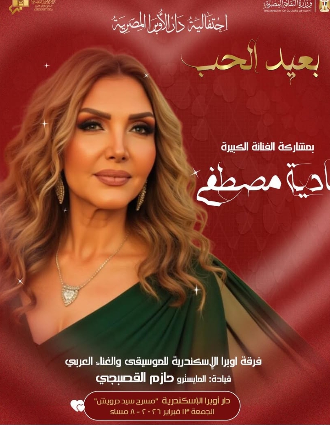 ويأتي حفل نادية مصطفى، في أوبرا الإسكندرية بمصاحبة الفرقة الموسيقية بقيادة المايسترو حازم القصبجي.
