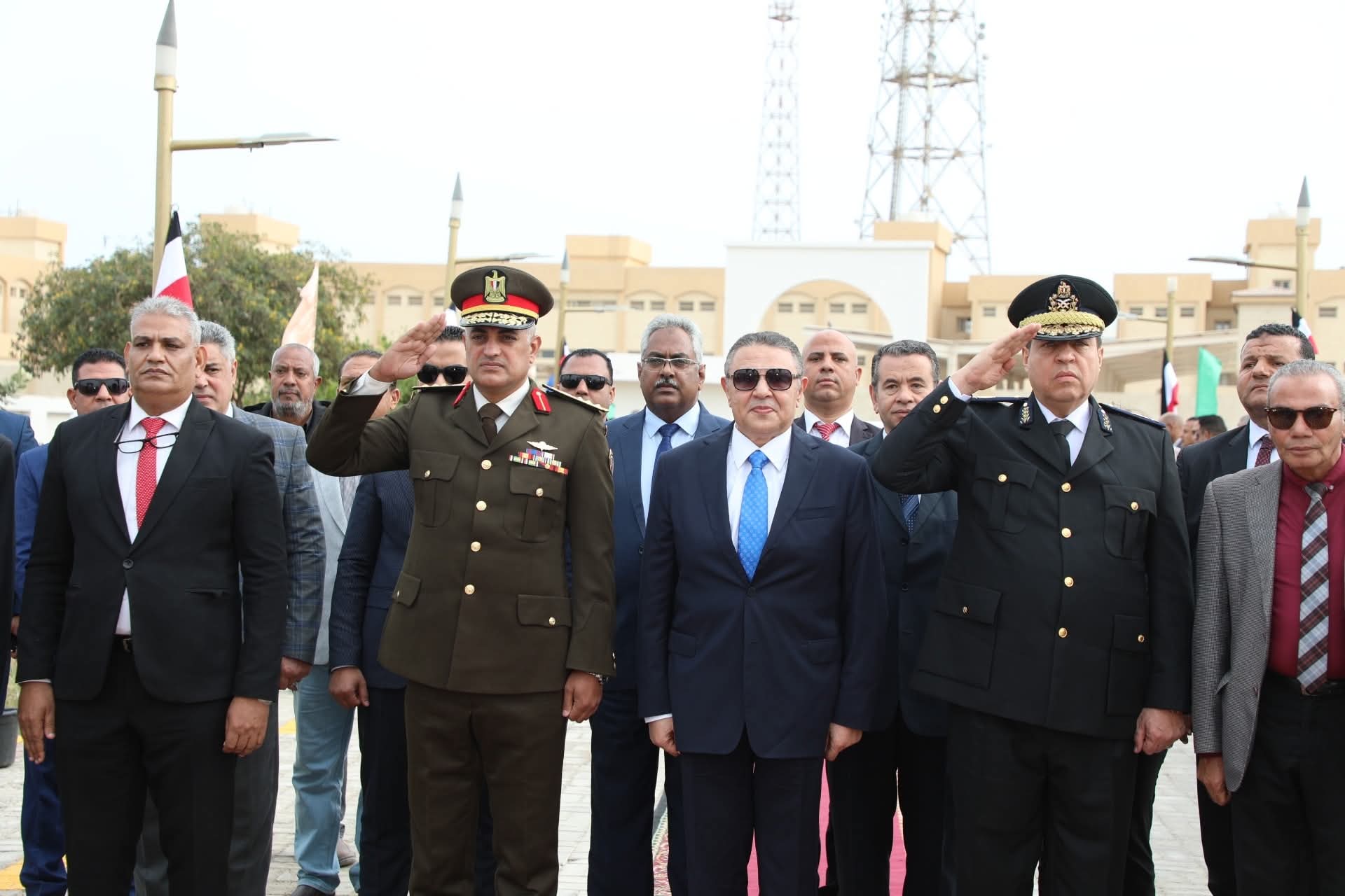 حضر وضع إكليل الزهور على النصب التذكاري الأستاذ كمال سليمان سكرتير عام المحافظة ، واللواء محمد سليم رئيس الإدارة المركزية لشئون مكتب المحافظ ، والأستاذ هيثم فارس مدير مكتب المحافظ، واللواء ايهاب رأفت مستشار المحافظ لشئون المديريات والمدن ، واللواء أحمد جبر رئيس حي جنوب ، واللواء أحمد علي رئيس حي شمال ومديرى المديريات والإدارات بالمحافظة وممثلي المجتمع المدني و الأزهر والأوقاف والكنيسة .