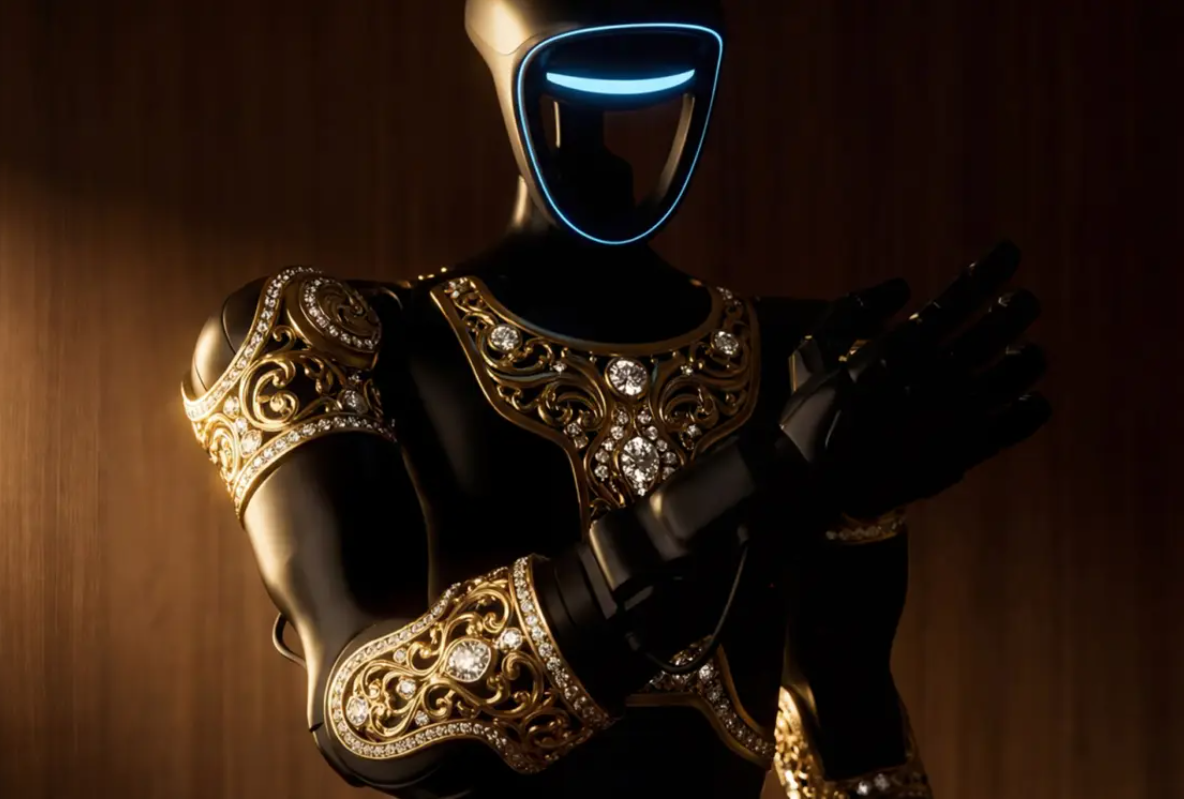 أعلنت شركة كافيار Caviar، العلامة العالمية المتخصصة في تصميم الهواتف والساعات الفاخرة، عن إطلاق أول روبوت بشري باسم "علاء الدين"، وهو نسخة مخصصة من روبوت Unitree G1 البشرية، مصمم ليكون تحفة فنية فاخرة مستوحاة من الثقافة العربية وفن العمارة الإسلامية.