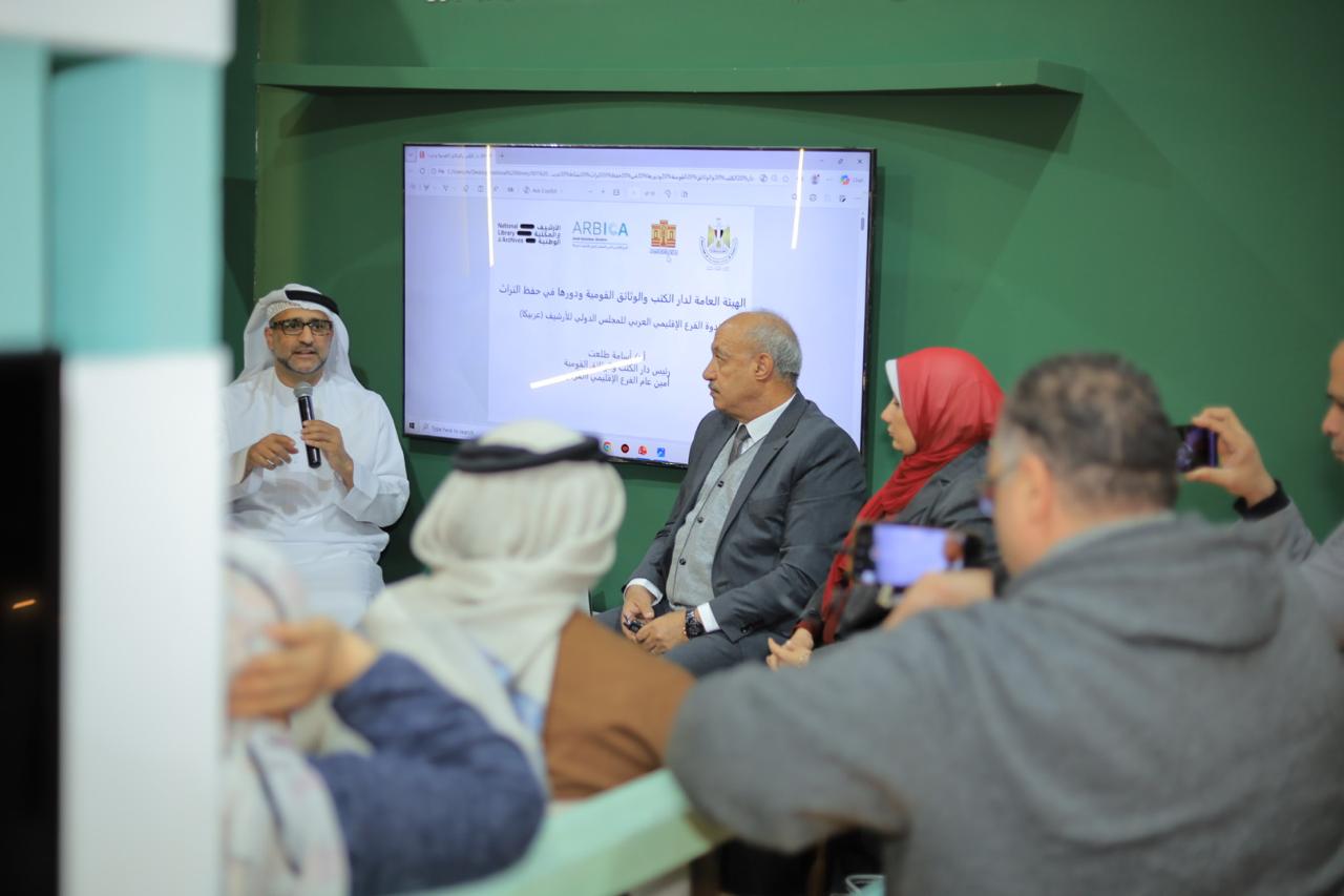 نظم الفرع الإقليمي العربي للمجلس الدولي للأرشيف (أربيكا)، بالتعاون مع الأرشيف والمكتبة الوطنية، ندوة بعنوان «دور الأرشيفات في حفظ الذاكرة.. الأرشيف والمكتبة الوطنية في دولة الإمارات نموذجاً لحفظ الذاكرة العربية»، وذلك على المنصة التي يشارك بها الأرشيف والمكتبة الوطنية ضمن فعاليات معرض القاهرة الدولي للكتاب 2026.