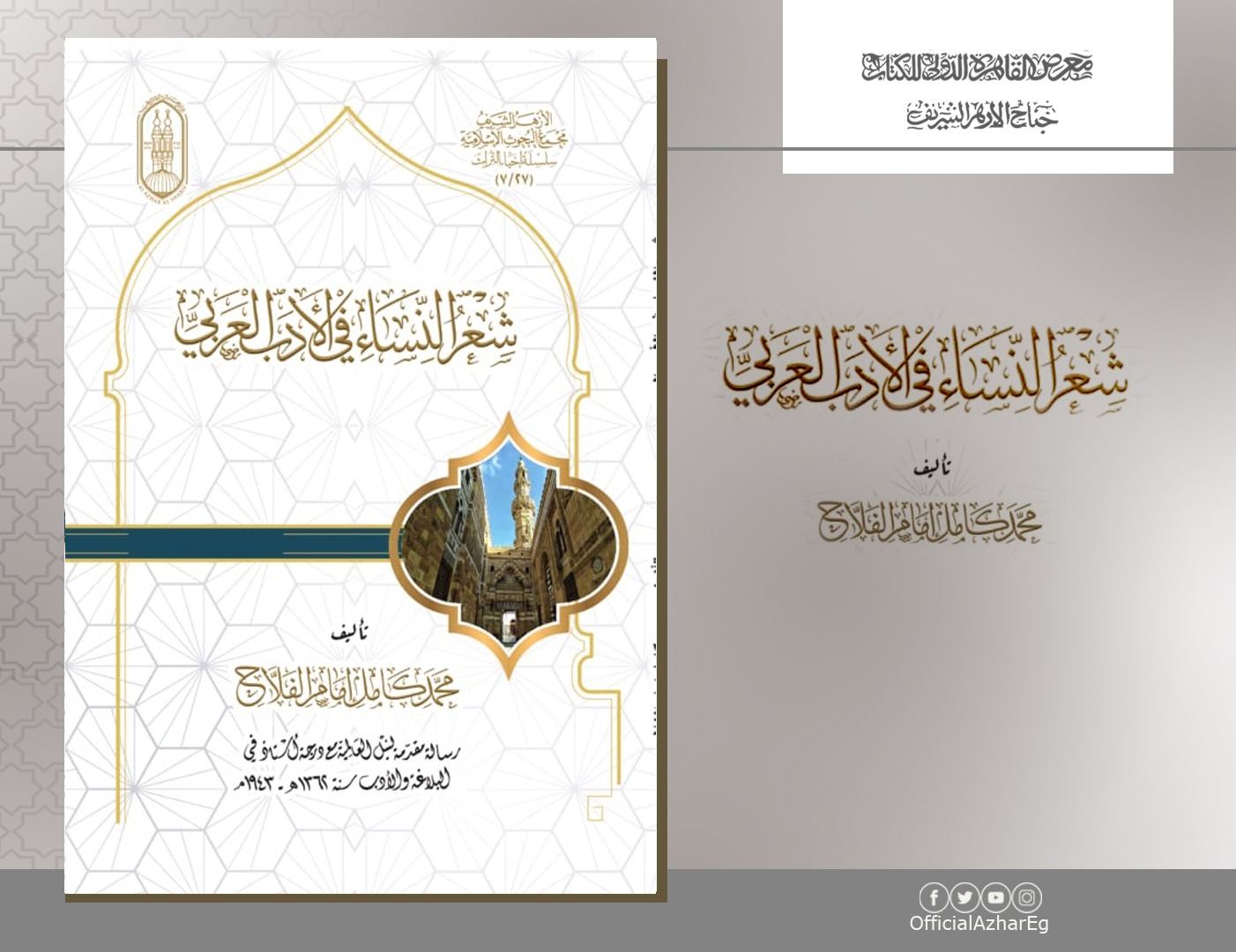 يقدِّم جناح الأزهر الشريف بمعرض القاهرة الدولي للكتاب، في دورته الـ 57، لزوَّاره كتاب "شِعْر النِّساء في الأدب العربي"، بقلم الشيخ محمد كامل إمام الفلاح، من علماء الأزهر الشريف، من إصدارات مجمع البحوث الإسلامية بالأزهر.
