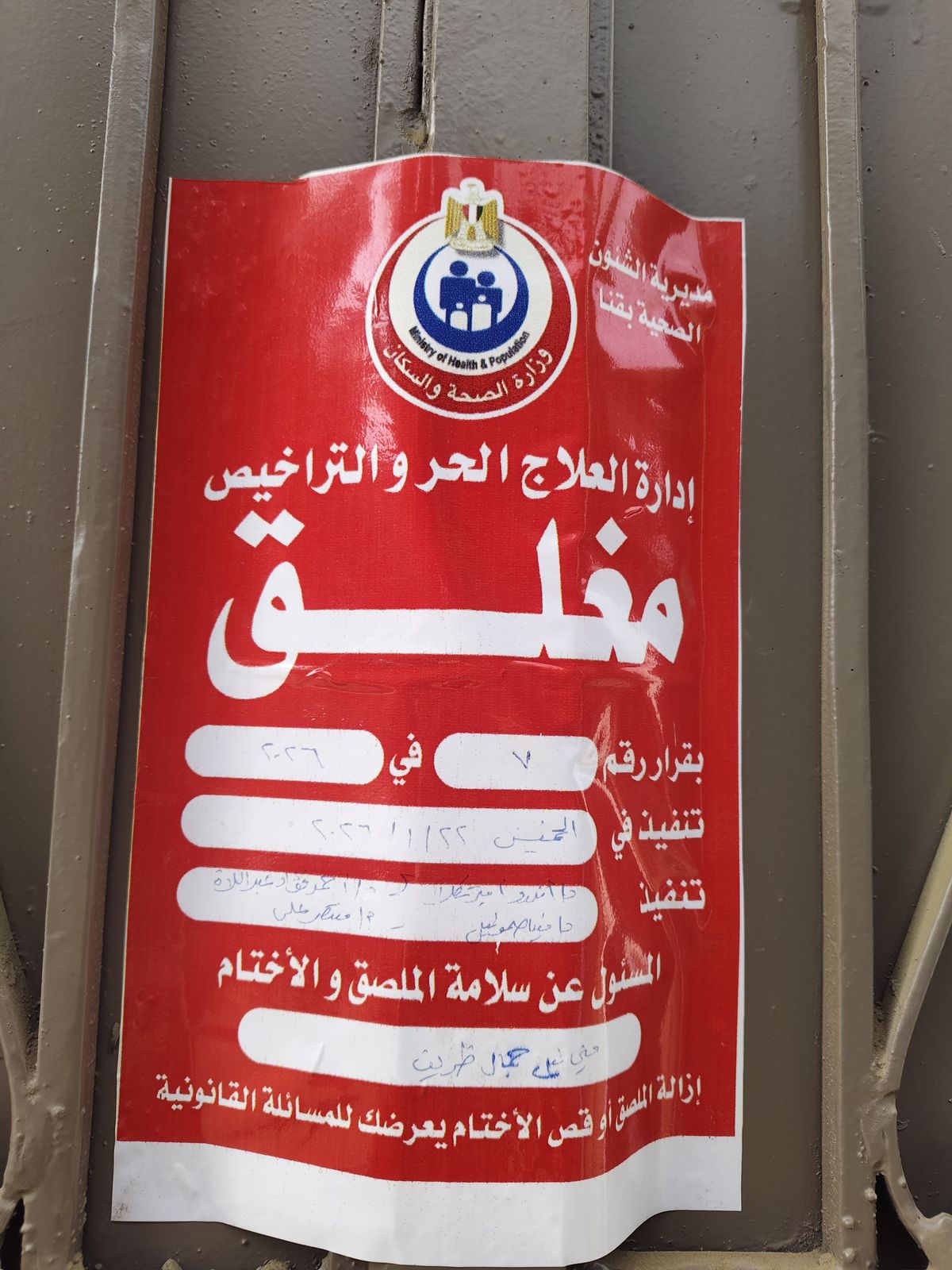 تمكنت إدارة العلاج الحر بمديرية الصحة بقنا، من ضبط مركز لعلاج الإدمان بمركز نجع حمادي يعمل بدون ترخيص رسمي ويدار بواسطة أشخاص غير مؤهلين وغير متخصصين في المجال الطبى، في إطار توجيهات الدكتور أحمد محمود صادق، وكيل وزارة الصحة بقنا، بمراجعة الخدمات الطبية المقدمة بالمنافذ الطبية الخاصة ورصد أي مخالفات بها بهدف حماية صحة وسلامة المواطنين.
