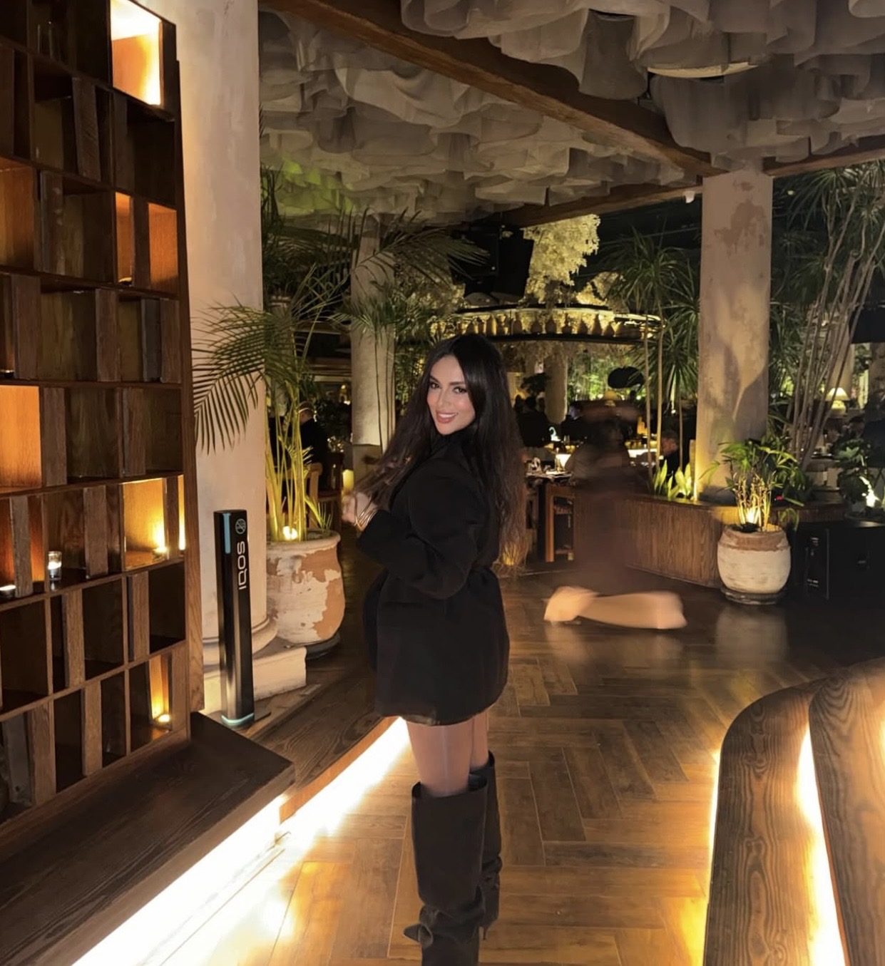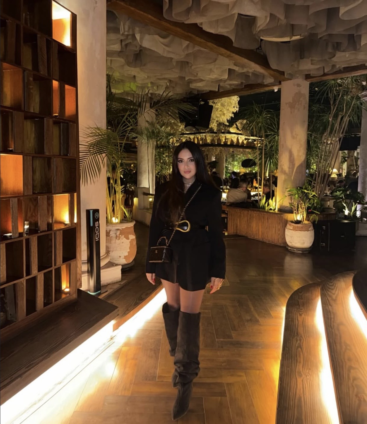 وظهرت إسراء زوجة حمدي الميرغني مرتدية فستانًا أسود قصيرًا اتسم بالبساطة والأناقة، ونسّقته مع حذاء طويل باللون الأسود وحقيبة صغيرة، ما أضفى على إطلالتها لمسة عصرية وراقية في الوقت نفسه، بينما اعتمدت مكياجًا ناعمًا أبرز ملامحها بشكل جذاب.