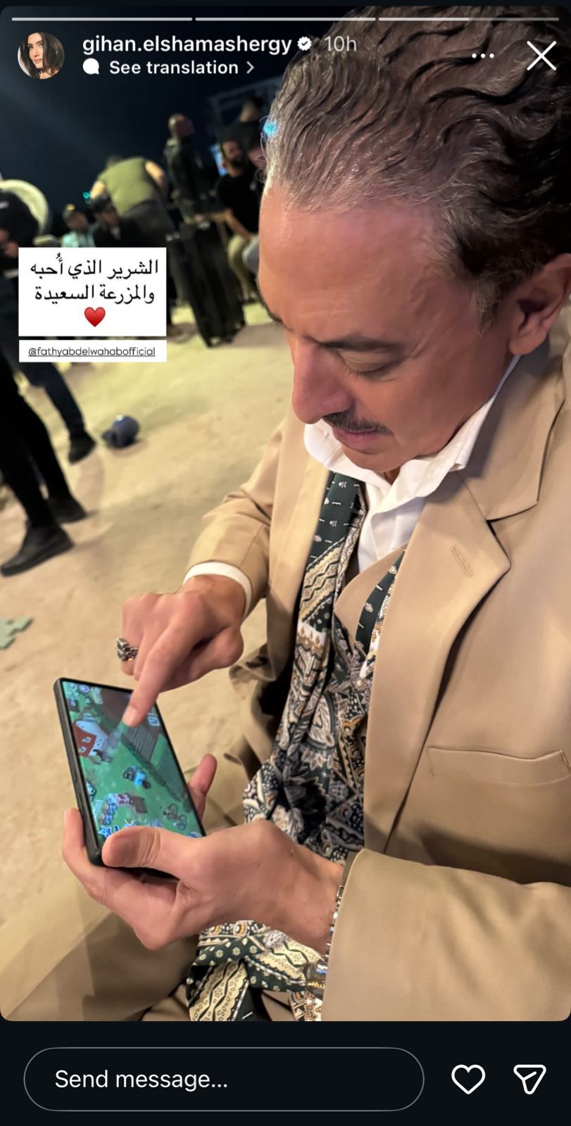 ونشرت جيهان الشماشرجي صورة للفنان فتحي عبد الوهاب ، عبر ستوري حسابها على انستجرام، وكتبت: “الشرير الذي احبه والمزرعة السعيدة”.