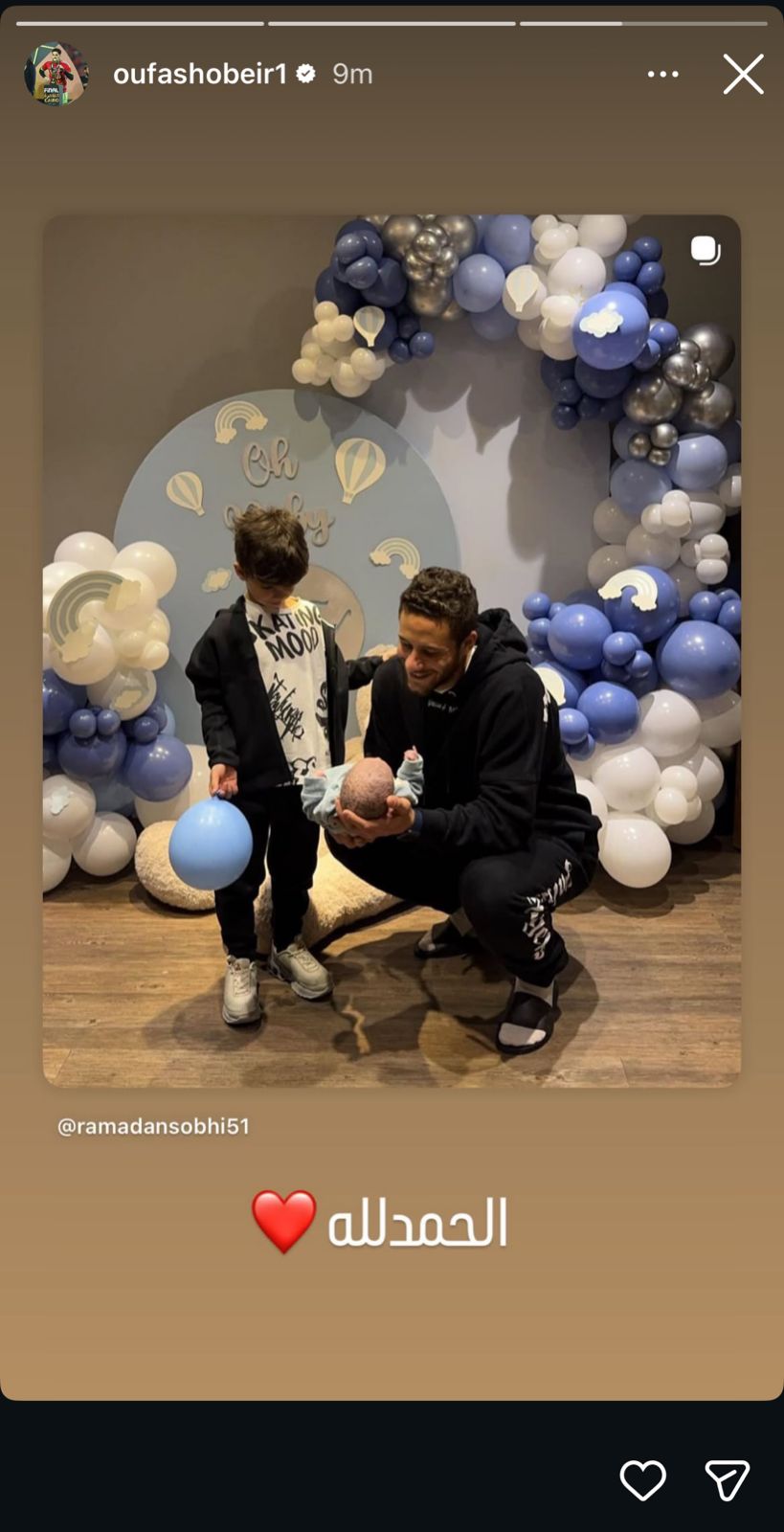 وشارك مصطفى شوبير صورة لرمضان صبحي وعلق عليها: “الحمد لله”.