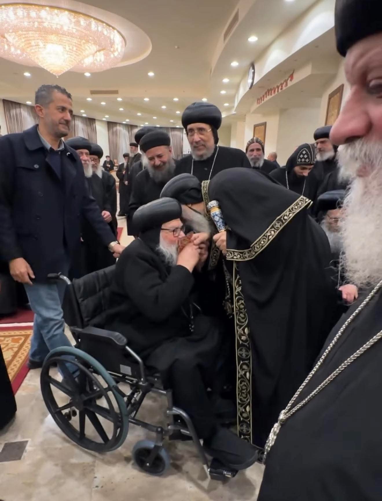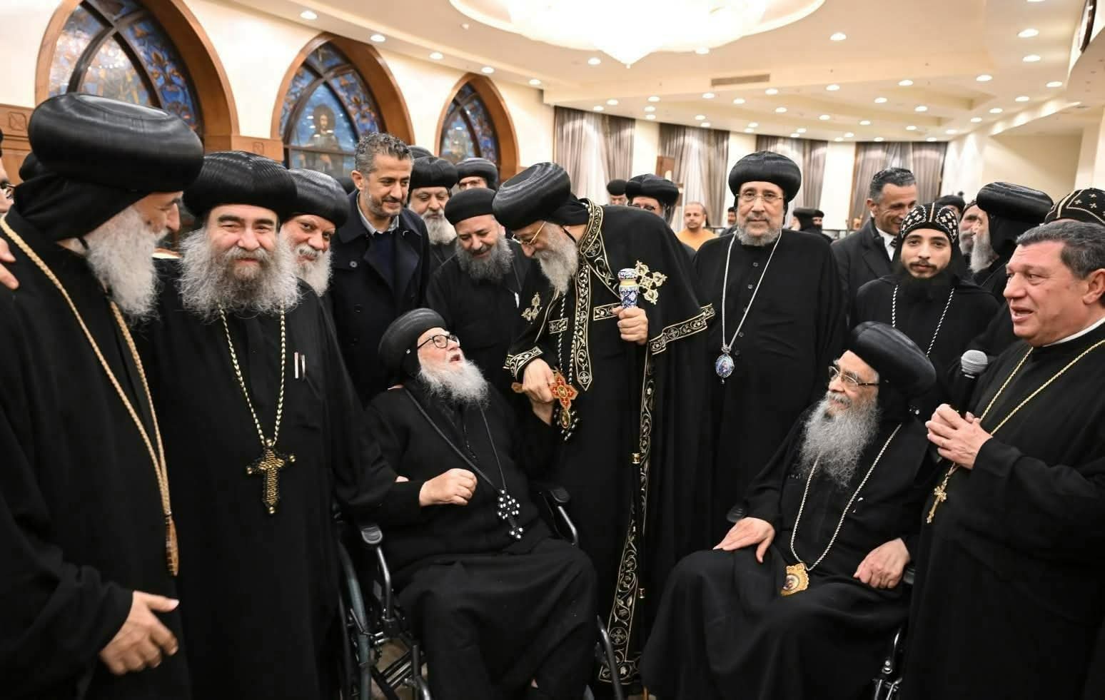 ولفت انتباه الكثيرين جلوس الأنبا موسى على كرسي متحرك، المشهد الذي عبر عن الروابط القوية بين قادة الكنيسة، وعن الدعم المتواصل الذي يقدمه كل منهم للآخر، مهما كانت الظروف الصحية أو المسافات.