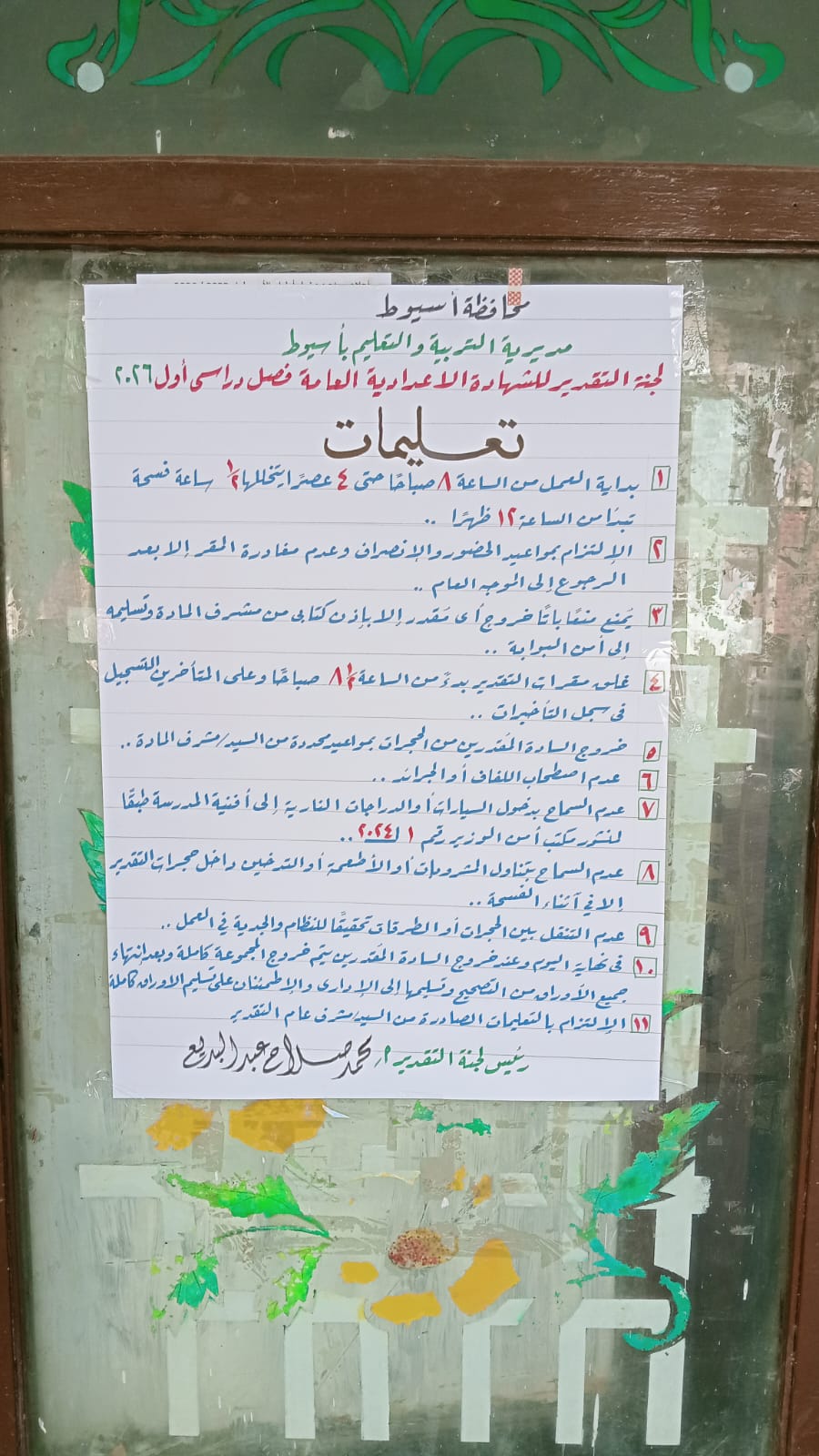 تفقد محمد ابراهيم دسوقى وكيل وزارة التربية والتعليم بأسيوط،اليوم الاحد، أعمال تقدير درجات امتحانات الشهادة الإعدادية للفصل الدراسي الاول لعام 2025 / 2026 بمشاركة أكثر من 2300 معلم ومعلمة من مختلف التخصصات وذلك تنفيذا لتوجيهات اللواء دكتور هشام ابوالنصر محافظ أسيوط و محمد عبد اللطيف وزير التربية والتعليم التعليم الفنى بتكثيف أعمال المتابعات لأعمال الامتحانات ولجان تقدير الدرجات.