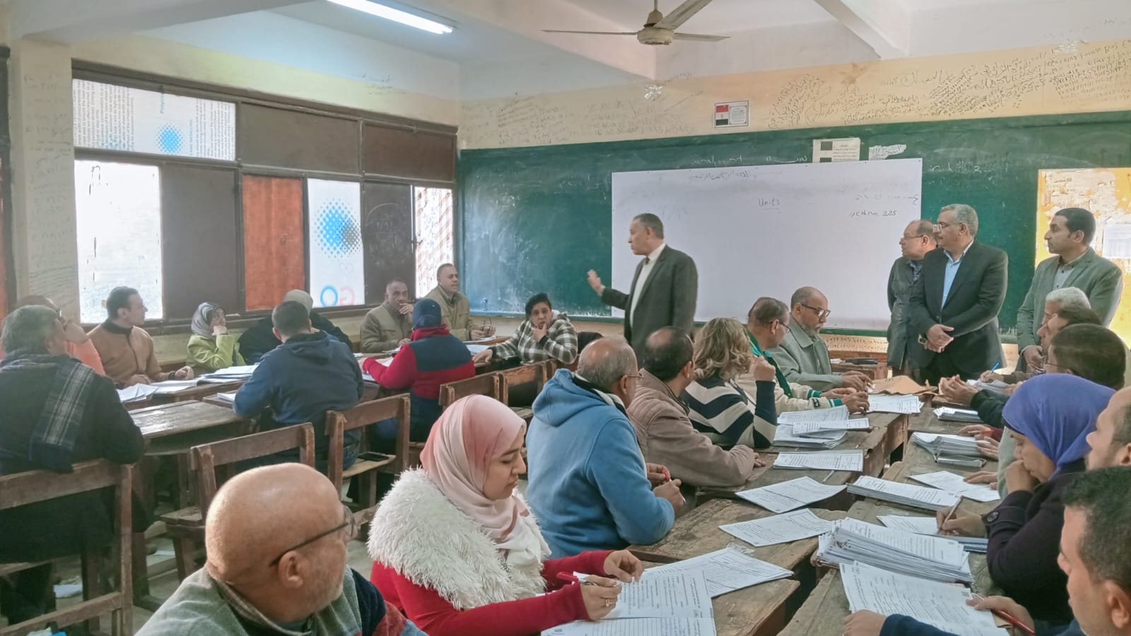 حيث استهل وكيل الوازرة جولته التفقدية بمتابعة أعمال لجان تصحيح أوراق الإجابات لمادة اللغة الانجليزية للشهادة الإعدادية بمقر مدرسة اسيوط الثانوية التجارية بحى غرب والتقى المقدرين والموجهين والمشرفين على أعمال التصحيح وحثهم على الالتزام بكافة معايير وضوابط التصحيح لإعطاء كل ذى حق حقه وتفعيل المراجعات تحت مسؤولية الموجهين الاوائل وموجه عام المادة لضمان ضبط سير أعمال التصحيح .