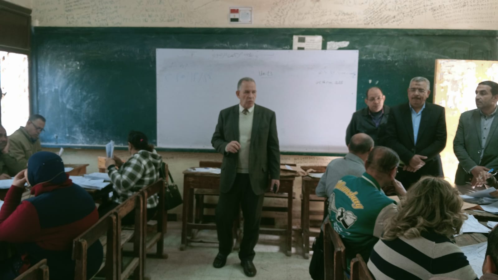 جاء ذلك بحضور محمد صلاح عبد البديع رئيس لجنة تقدير الدرجات لامتحانات الشهادة الاعدادية و رمضان متولى موجه عام اللغة الإنجليزية .