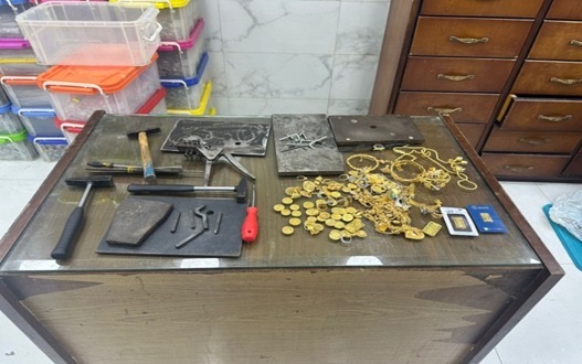 عقب تقنين الإجراءات تم إستهداف المخازن المشار إليها وأمكن ضبطهما وبحوزتهما (قرابة 3,5 طن مشغولات فضية ، قرابة كيلو جرام مشغولات ذهبية " مهربين جمركياً ومدموغين بدمغات مقلدة – الأدوات والمعدات المستخدمة فى حفر الدمغات المقلدة ).