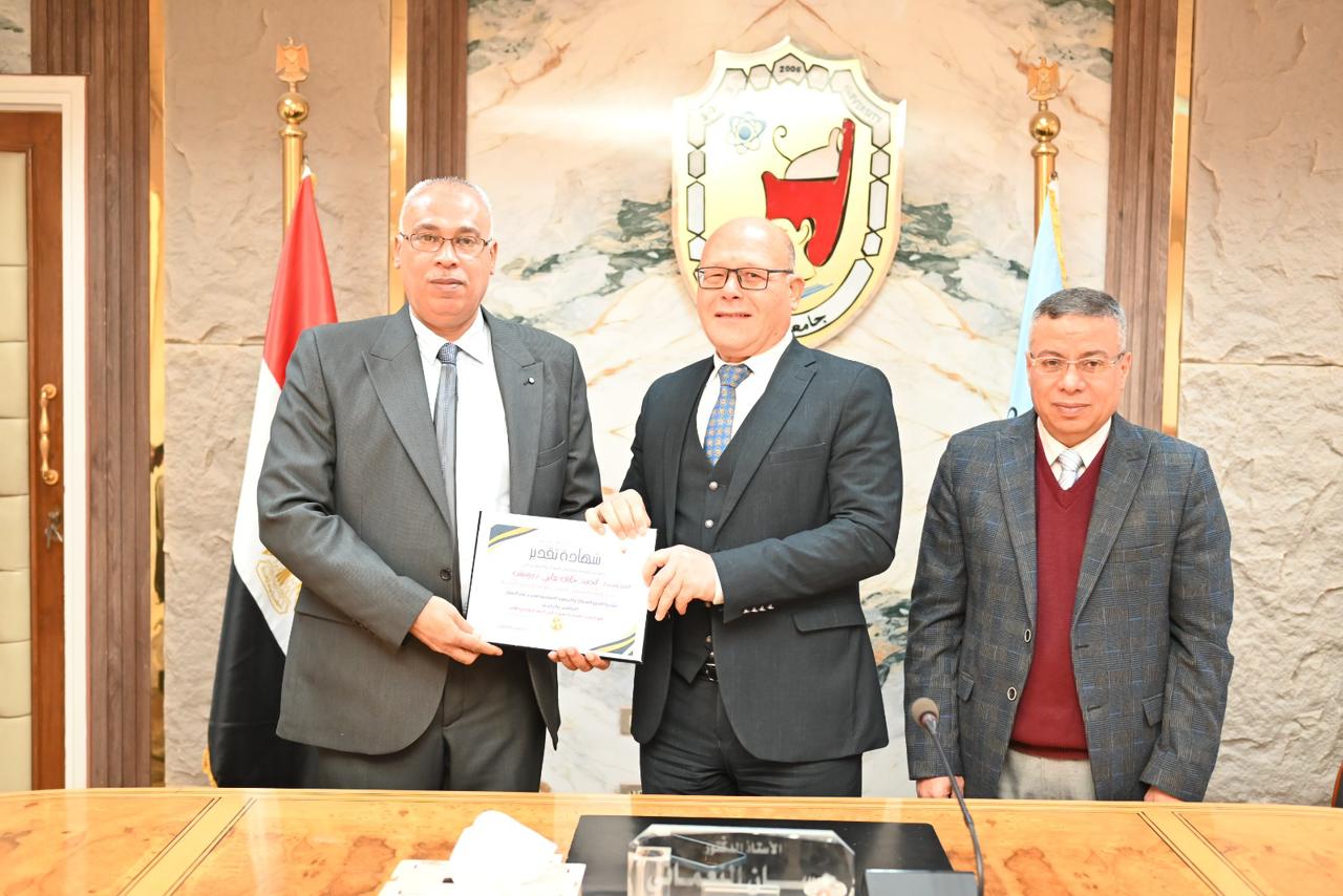 وفي هذا السياق، كرم الدكتور حسان النعماني رئيس جامعة سوهاج، المحاسب عبدالحميد محمد عبدالحميد وكيل وزارة المالية، إلى جانب مديري الوحدات الحسابية بالجامعة والمستشفيات الجامعية ووكلاء الحسابات.