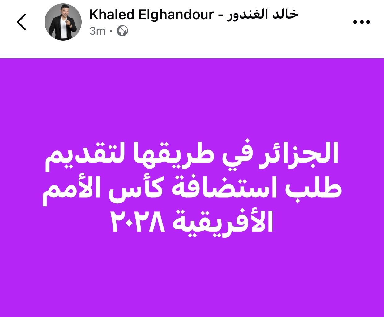 كشف الإعلامي خالد الغندور، عبر حسابه الشخصي بموقع التواصل الإجتماعي فيسبوك ، أن الجزائر تسير بخطوات جادة نحو التقدم بطلب رسمي لاستضافة بطولة كأس الأمم الأفريقية 2028.