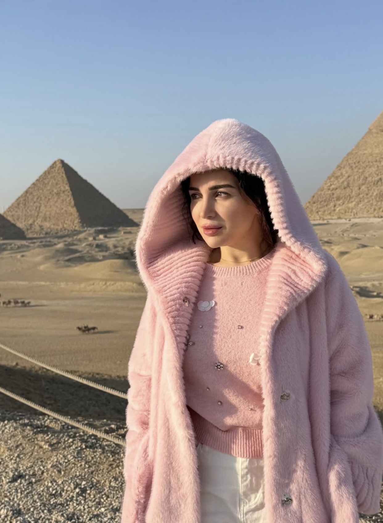 خطفت النجمة مي عز الدين ، الأنظار بإطلالة شتوية مميزة خلال أحدث ظهور لها في الأهرامات، حيث جمعت بين الرقي والبساطة في تناغم لافت مع عراقة المكان.