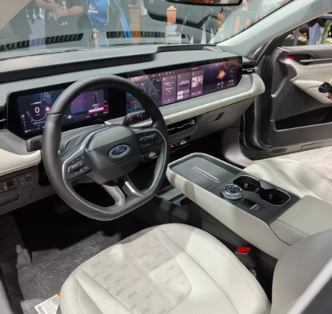 تأتي فورد توروس 2026 بمقصورة تعتمد على مفهوم الشاشات المدمجة، حيث تتوفر شاشة عملاقة تضم لوحة العدادات وتتكامل مع شاشة مركزية وشاشة أمام الراكب، جميعها ضمن إطار واحد، وتتيح هذه المنظومة عرض الوسائط المتعددة والخرائط، مع دعم أنظمة أبل كاربلاي وأندرويد أوتو.