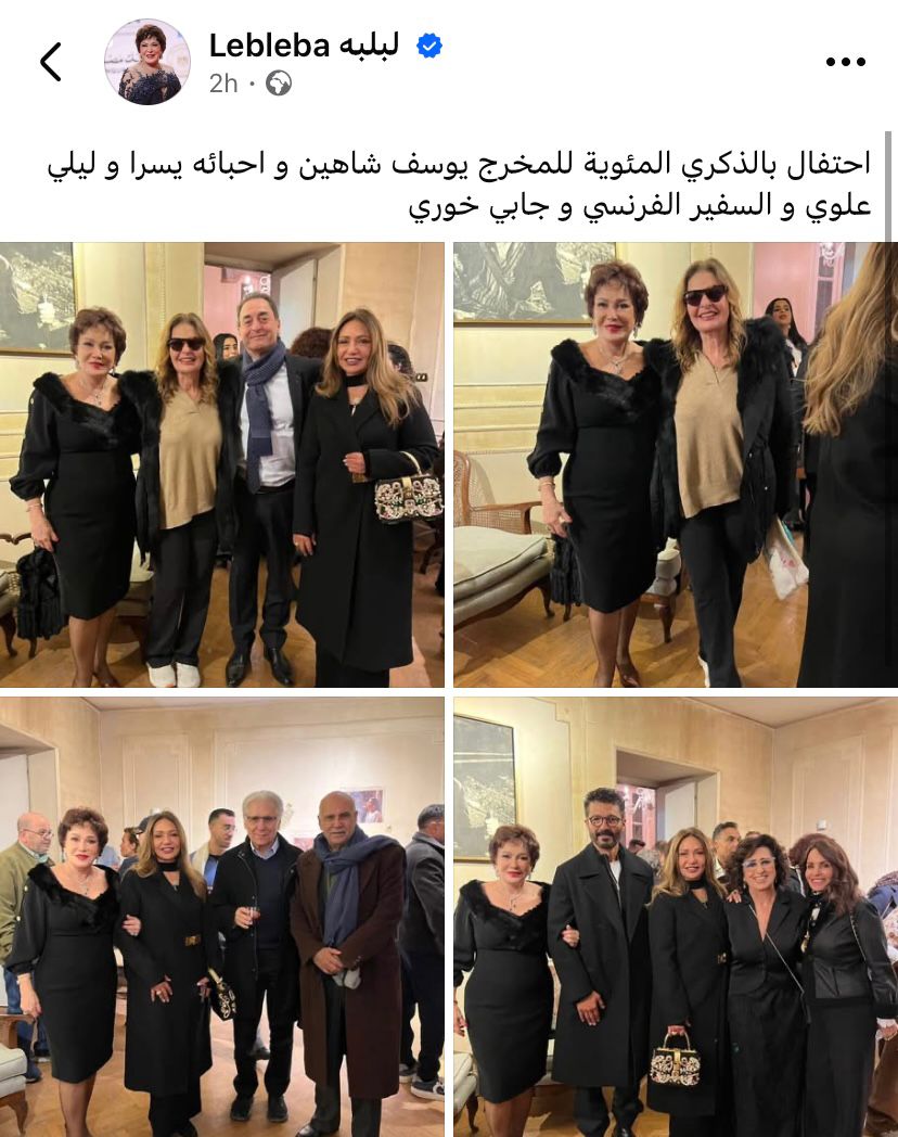 شاركت الفنانة لبلبة صورا لها و بعض الفنانين من احتفال الذكري المئوية للمخرج يوسف شاهين عبر حسابها علي موقع التواصل الإجتماعي .