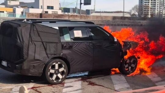 ظهرت سيارة هيونداي سانتافي موديل 2027 الفيس ليفت والنار تلتهمها اثناء اختبارها بالقرب أحد مصانع هيونداي الرئيسية في كوريا الجنوبية، وتحولت جولة اختبارها الروتينية إلى كتلة من اللهب .