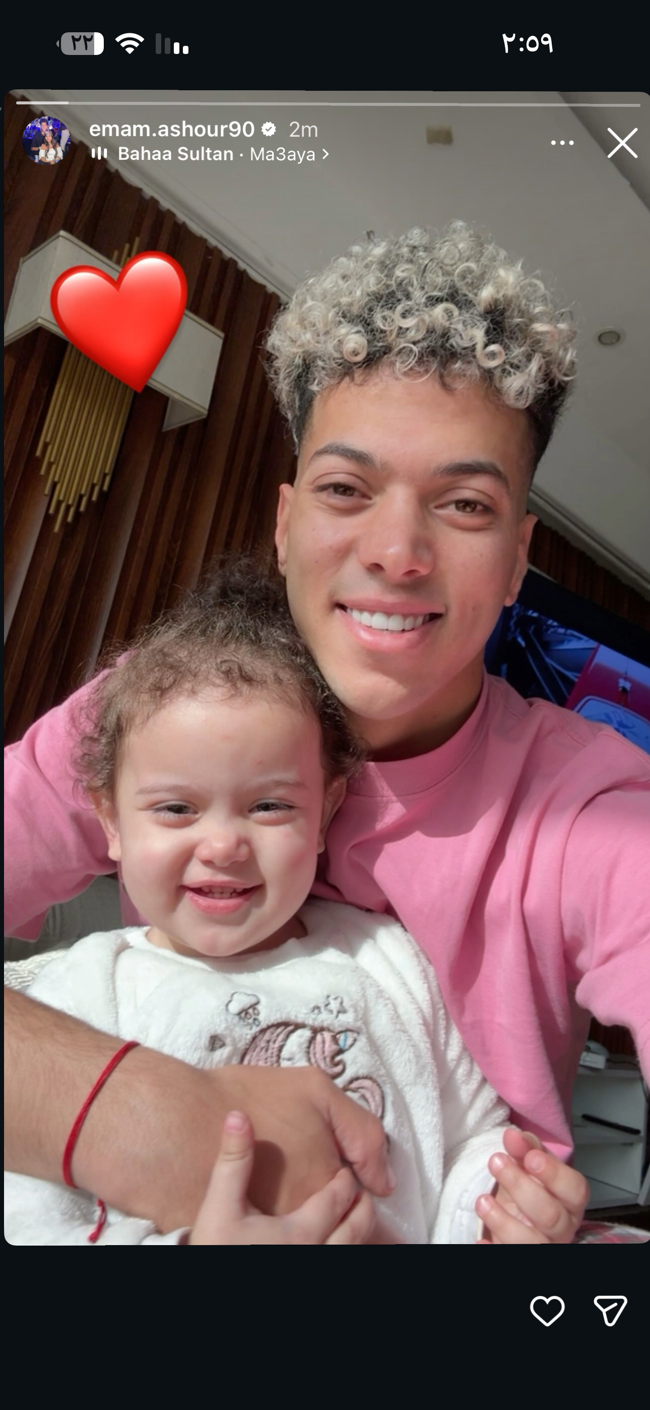 نشر امام عاشور لاعب النادي الأهلي، صورة تجمعه مع ابنته كتاليا عبر حسابها الشخصي انستجرام .