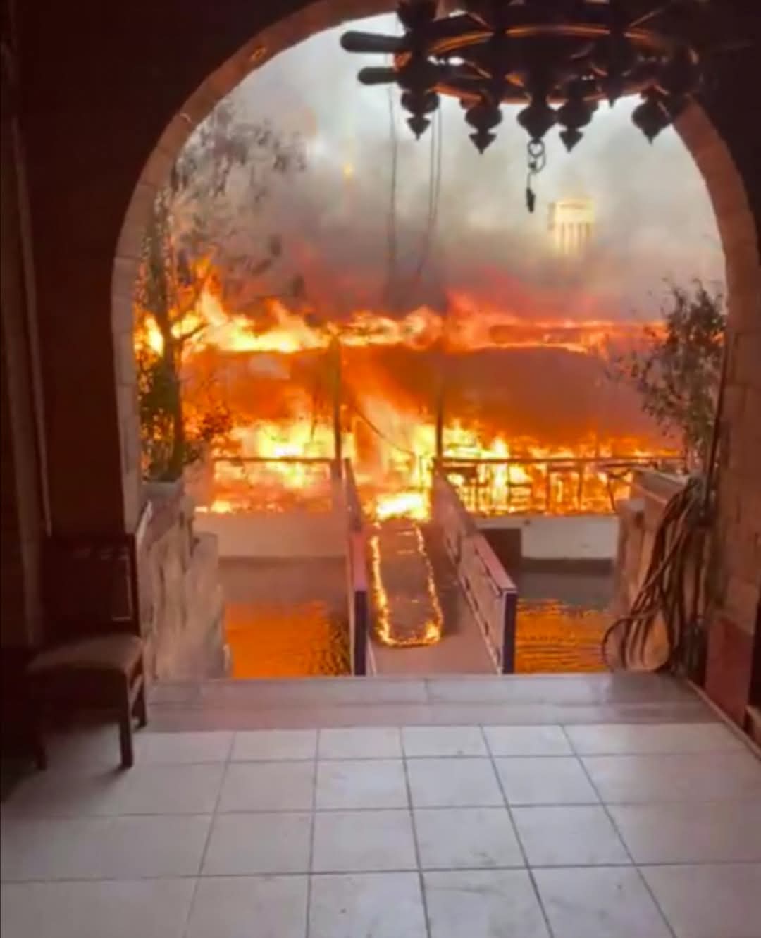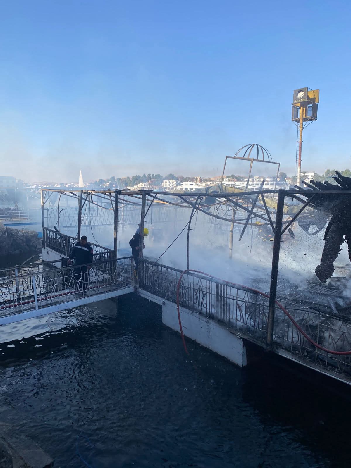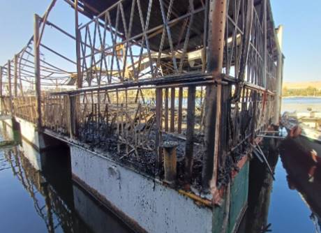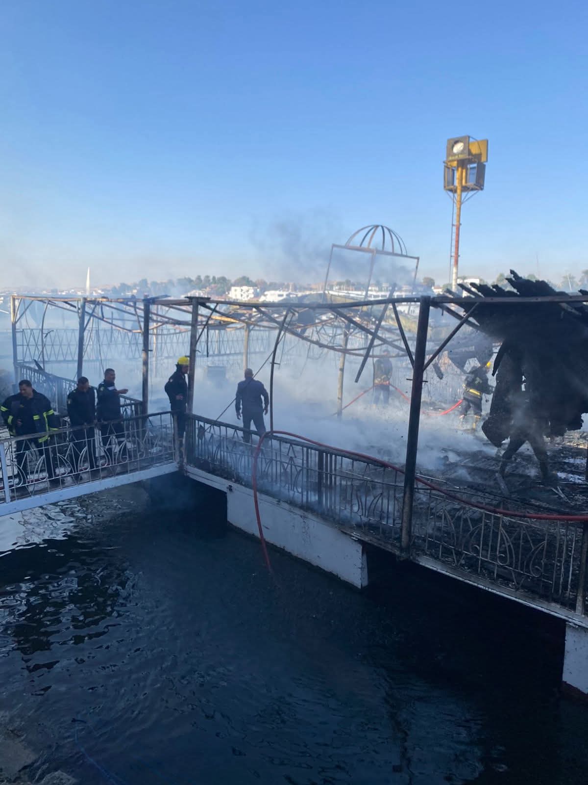 فيما قال مصطفى .م صاحب مركب شراعى وأحد شهود العيان بأن النيران إمتدت من عوامة المطعم إلى مركبه الشراعى الراسى بجوارها مما تسبب فى تلف أجزاء منه بعد أن كان قد جهزه للعمل فى السياحة النيلية .