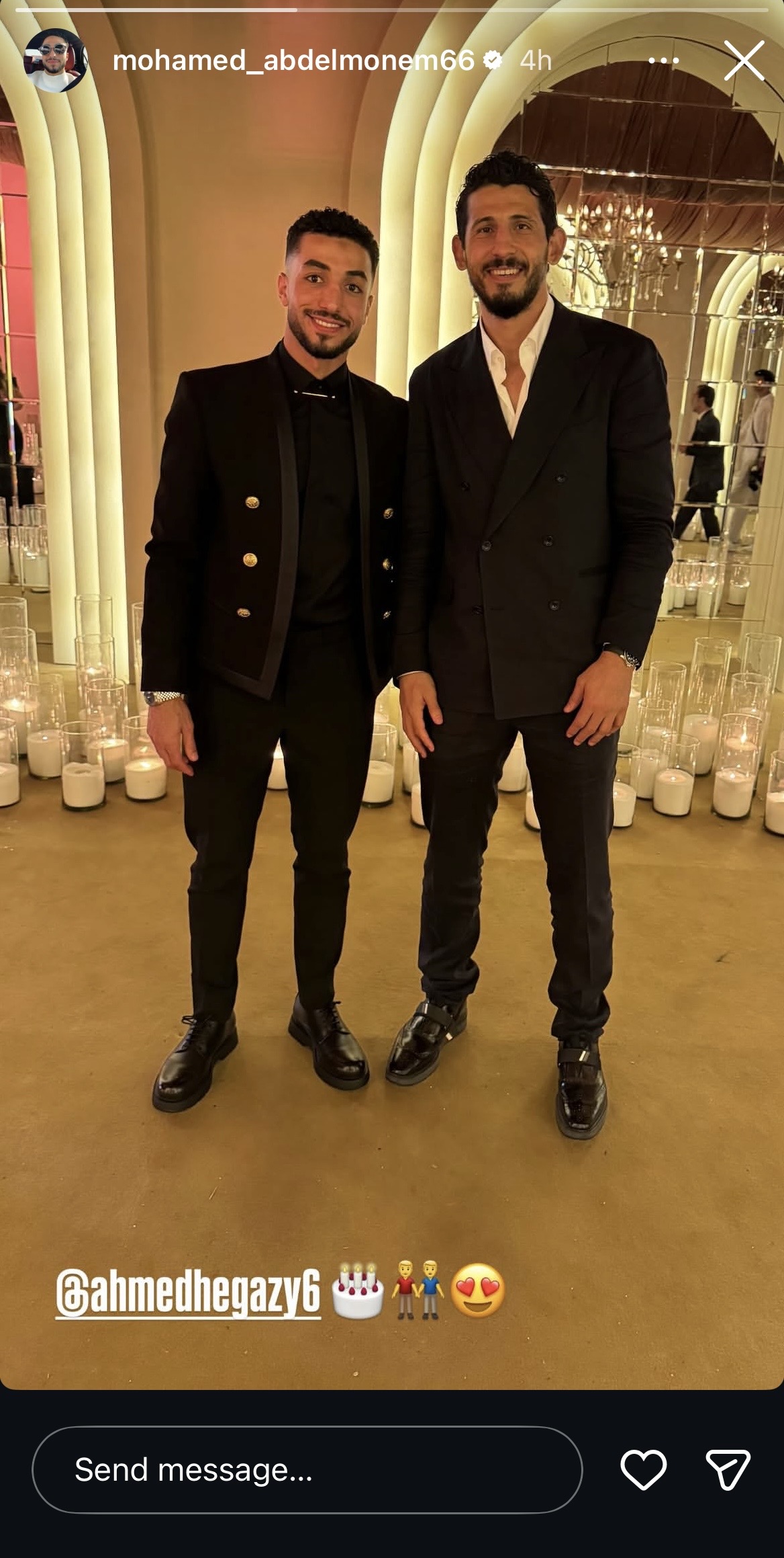 حرص محمد عبد المنعم، لاعب نيس الفرنسي، على تهنئة لاعب نيوم السعودي أحمد حجازي، بمناسبة الاحتفال بعيد ميلاده.
