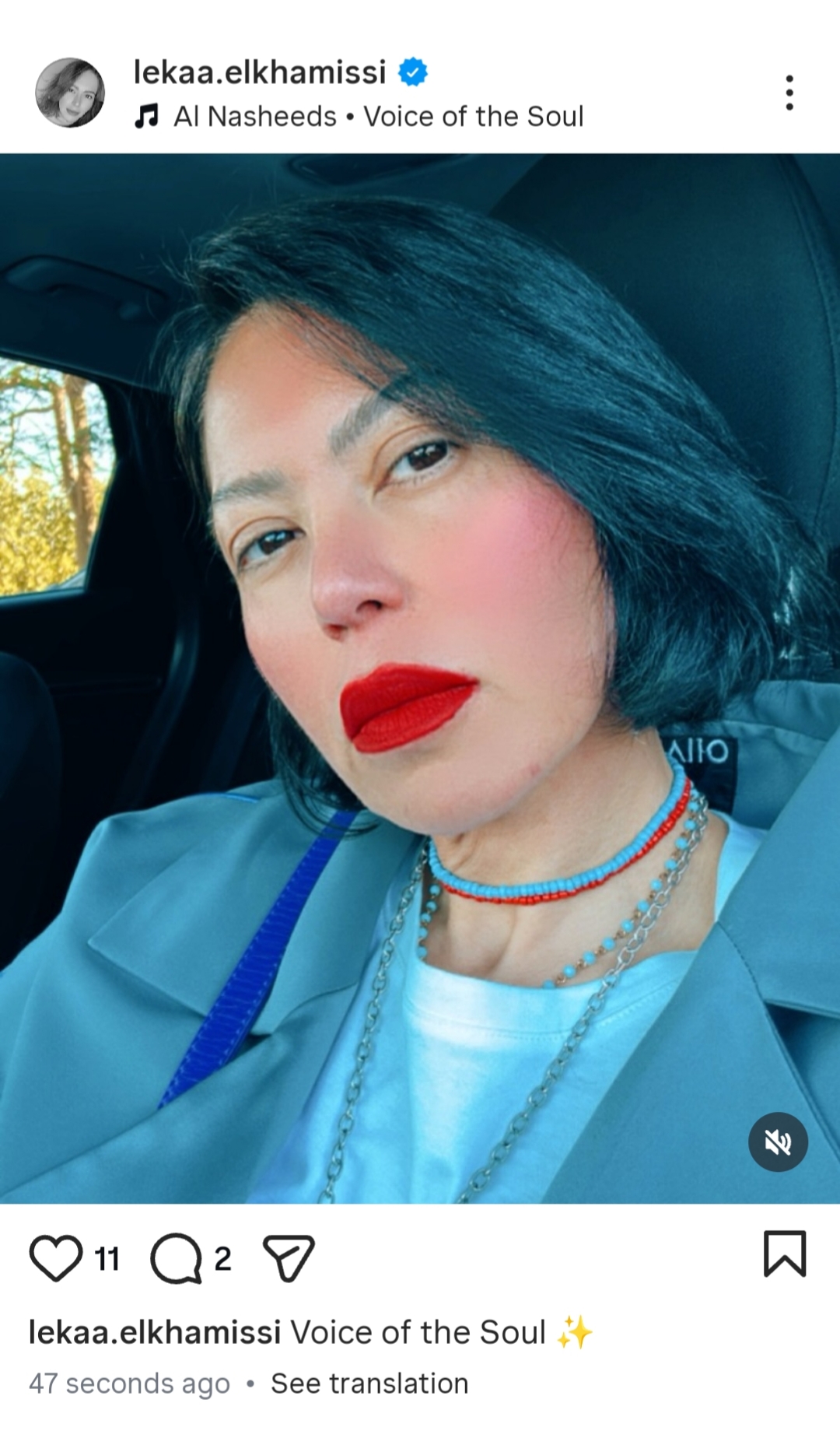 وظهرت لقاء الخميسي بملامح حزينة في الصورة و علقت كاتبه:صوت الروح،مما أثار قلق متابعيها.