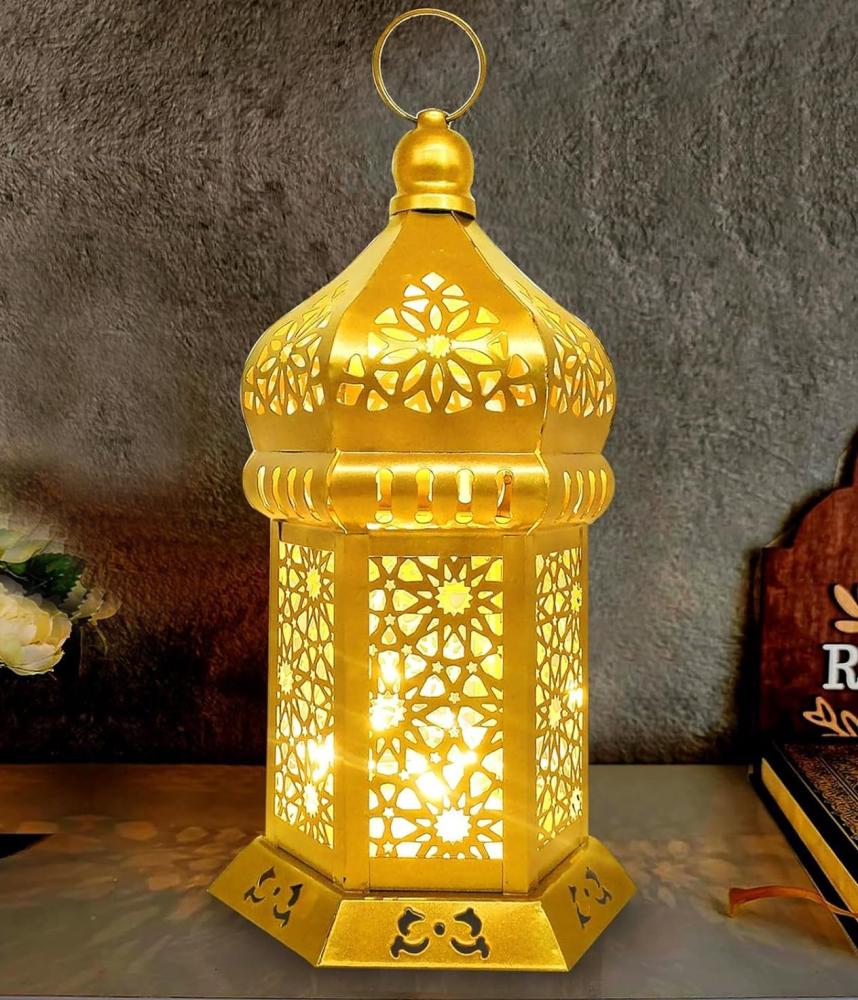 - سعر فانوس ذهبي معدني كبير مزخرف بإضاءة ليد يصل إلى 550 جنيهًا