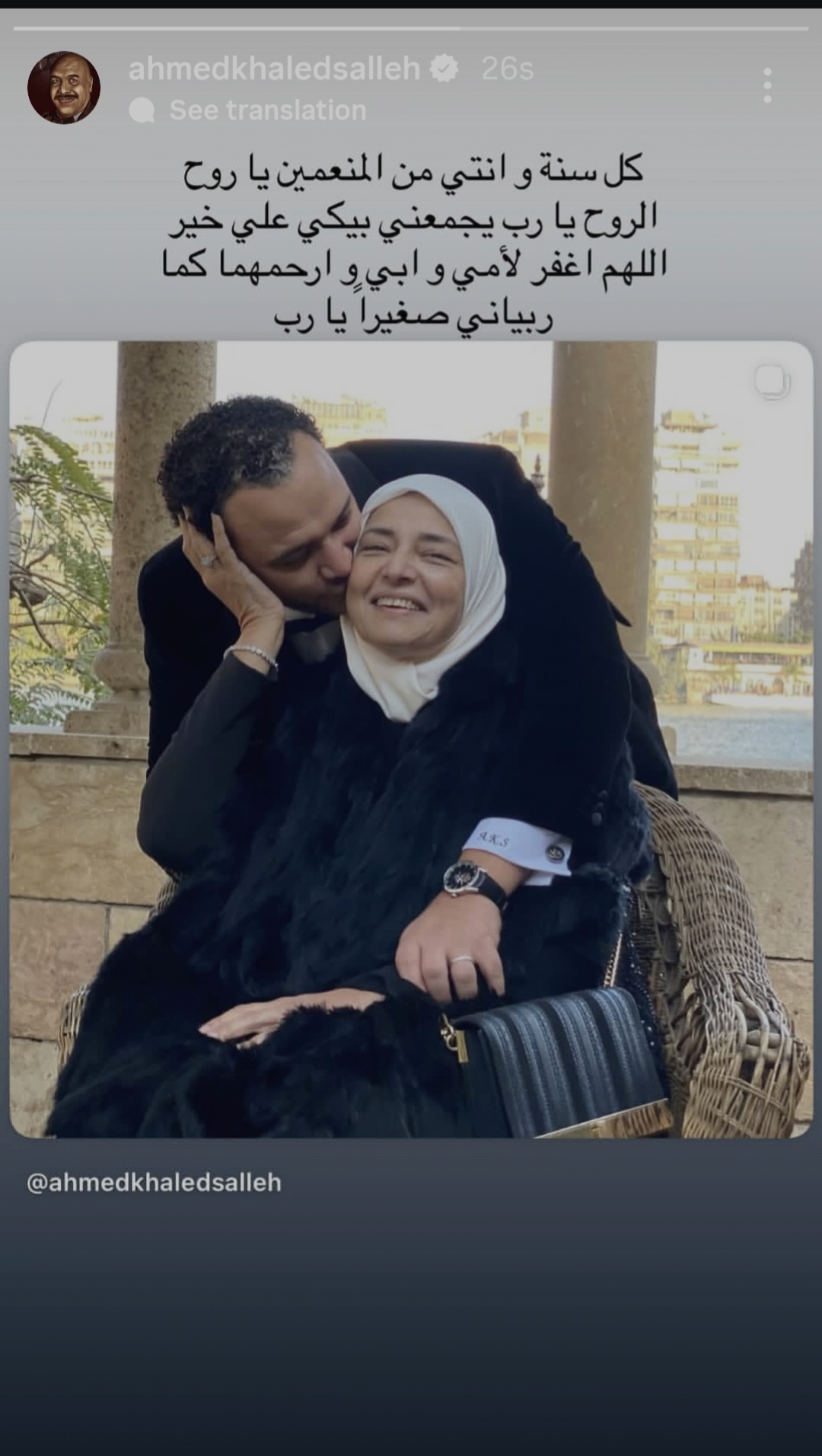 و نشر أحمد خالد صالح صورة برفقة والدتة و علق كاتبا:كل سنة و انتي من المنعمين يا روحالروح يا رب يجمعني بيكي علي خير اللهم اغفر لأمي و ابي و ارحمهما كما ربياني صغيرا يا رب.