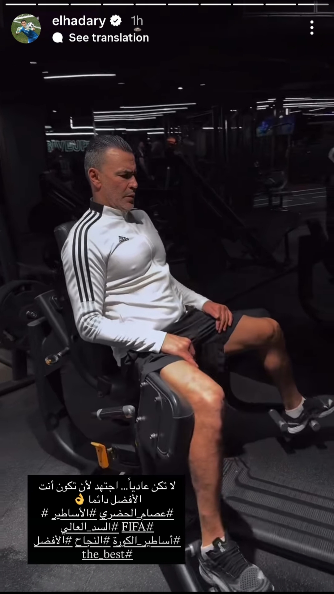 و ظهر عصام الحضري وهو يستعرض لياقته البدنية من الجيم و علق كاتبا:لا تكن عاديا ،اجتهد لان تكون الافضل دائما.