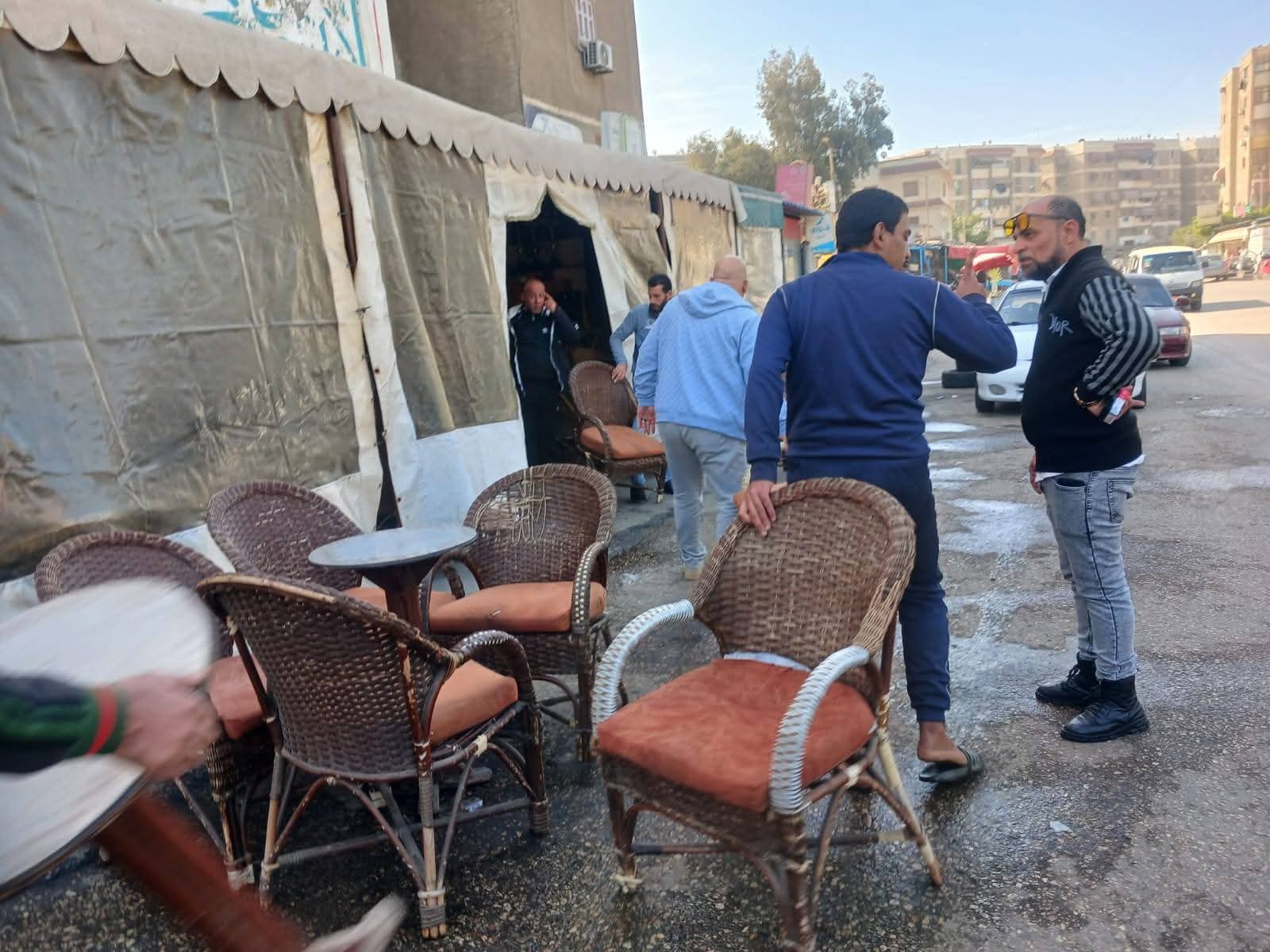 وقد اسفرت جهود الحملة عن ازالة فروشات للخضار والفاكهة واقفاص خشبية وأقفاص بلاستيكية وعربات يد وتند وشماسي وبنوك خشبية وترابيزات وكراسي من امام أحد المقاهى وازالة حوامل خشبية واستاندات وفروشات لبيع سلع متنوعة من امام نهر الطريق مستخدمين سيارات ومعدات الحى