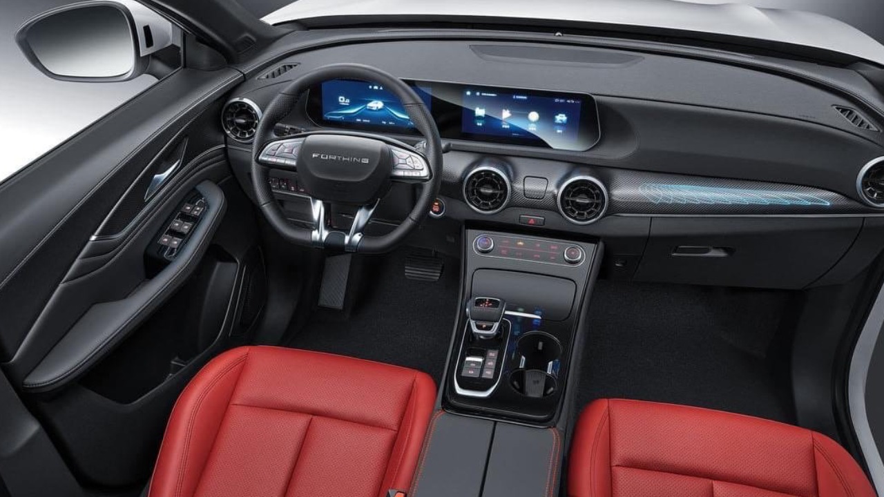 من الداخل، تعتمد فورثينج T5 على مقصورة بطابع رياضي عصري، مع فتحات تكييف دائرية مميزة، وشاشة عدادات رقمية قياس 10.25 بوصة، إلى جانب شاشة وسطية بنفس القياس لنظام المعلومات والترفيه.