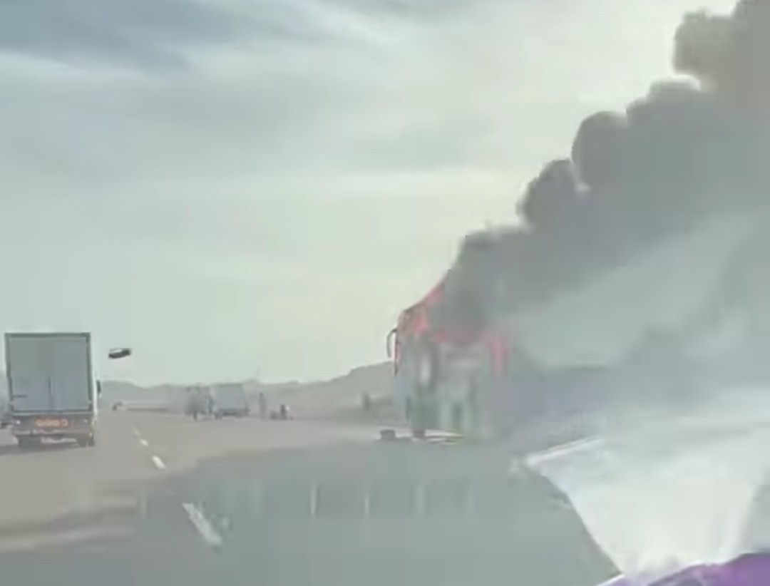 وتبين أنه أثناء الرحلة القادمة من مدينة المنصورة الى شرم الشيخ فوجئ الركاب بتصاعد ألسنة اللهب من الأتوبيس، ما دفع السائق إلى التوقف الفوري على جانب الطريق، وإنزال جميع الركاب بسرعة، حفاظًا على سلامتهم، دون وقوع أي إصابات وامتدت النيران إلى شنط الركاب .