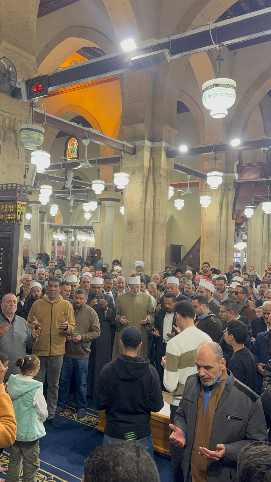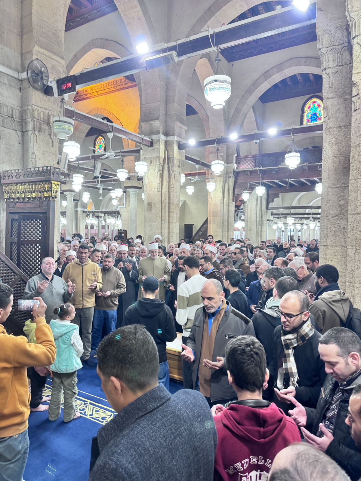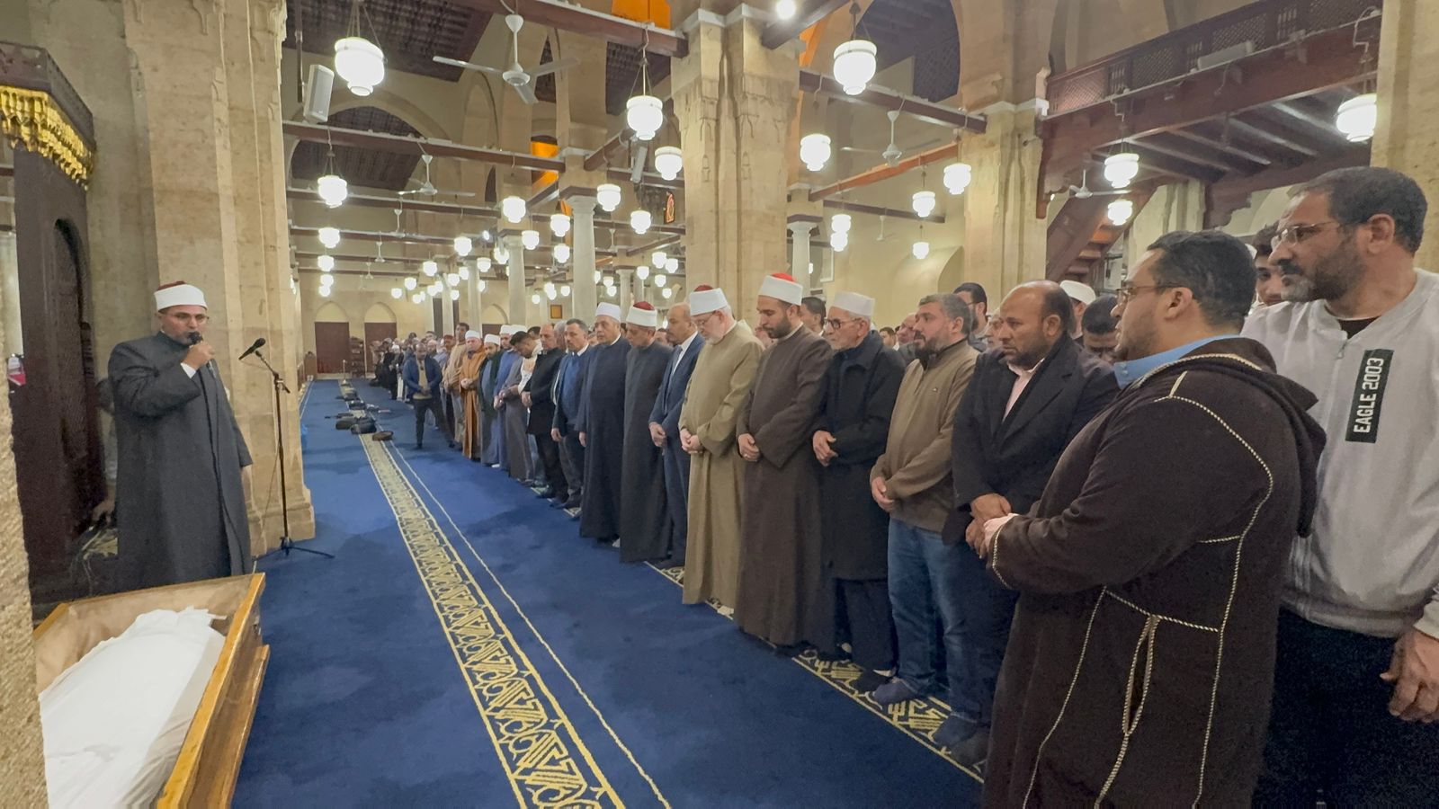 وأمَّ الدكتور محمد الضويني، وكيل الأزهر، المصلين في صلاة الجنازة على الفقيد، فيما ألقى الدكتور محمد عودة، مدير الجامع الأزهر، موعظة قبل أداء صلاة الجنازة كما حضر الشيخ أيمن عبد الغني، رئيس قطاع المعاهد الأزهرية، مراسم التشييع الجنازة.