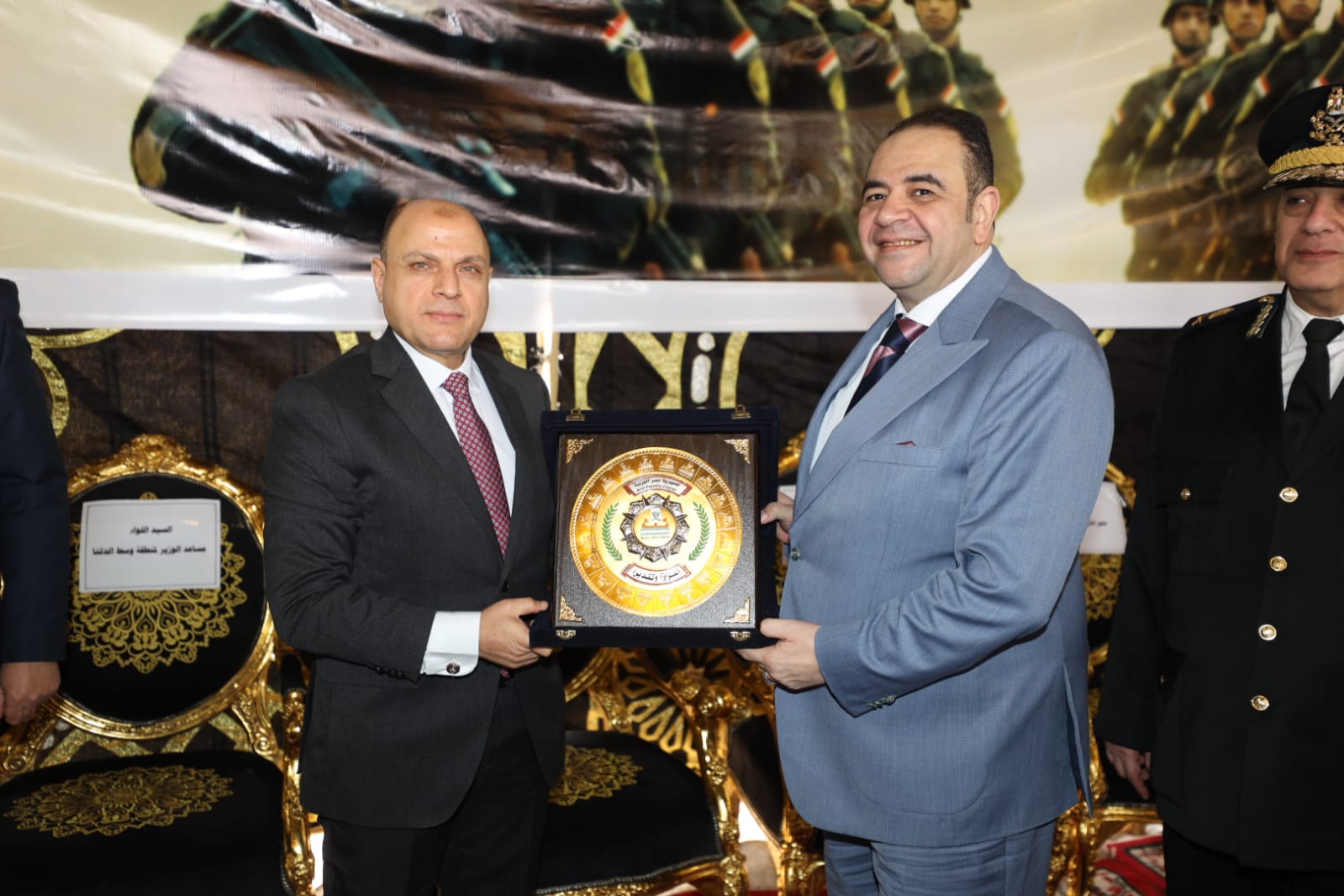 وتبادل اللواء دكتور علاء عبد المعطي، محافظ كفر الشيخ، والقيادات الأمنية الدروع التذكارية تقديرًا للجهود الوطنية المبذولة في خدمة الوطن وحماية المواطن.