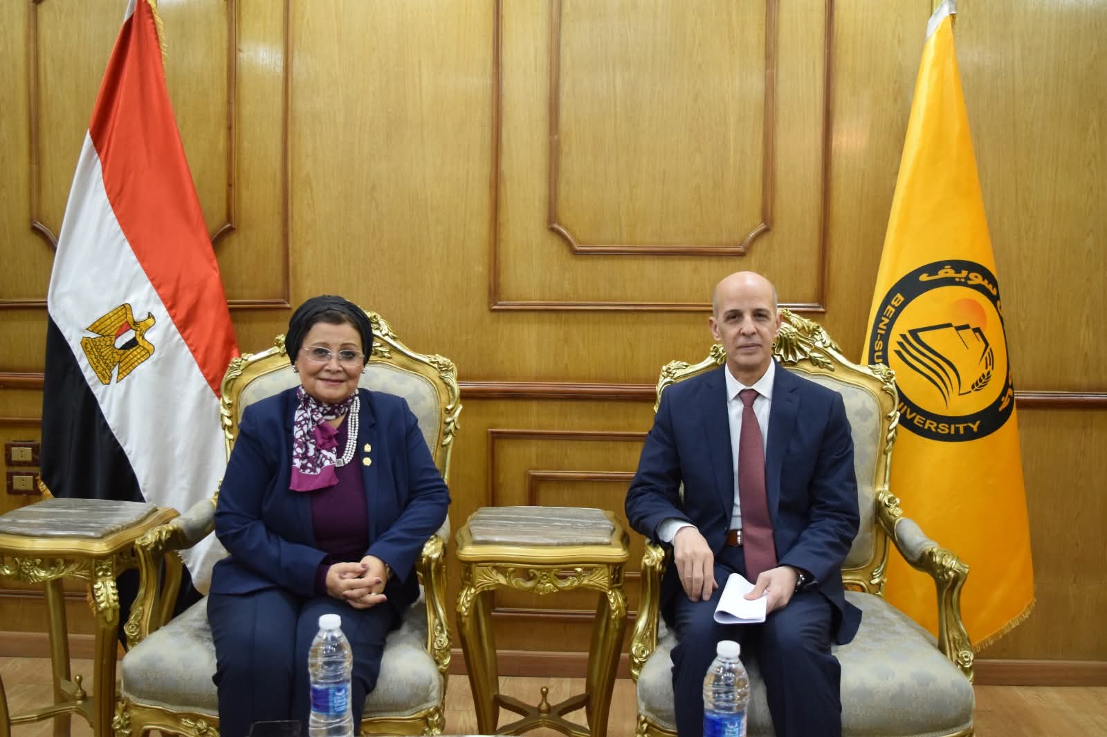 و استهل رئيس الجامعة اللقاء بالترحيب بنائب الوزير، مؤكدًا أن جامعة بني سويف تحرص على دعم المبادرات الوطنية الهادفة إلى تحسين الخصائص السكانية، وتعزيز مفاهيم الصحة الإنجابية وتنمية الأسرة، من خلال دورها التعليمي والبحثي وخدمة المجتمع. كما أشار إلى استعداد الجامعة لتسخير إمكاناتها العلمية والبحثية، وكليات القطاع الطبي، للمشاركة في تنفيذ البرامج التوعوية والتدريبية المشتركة.